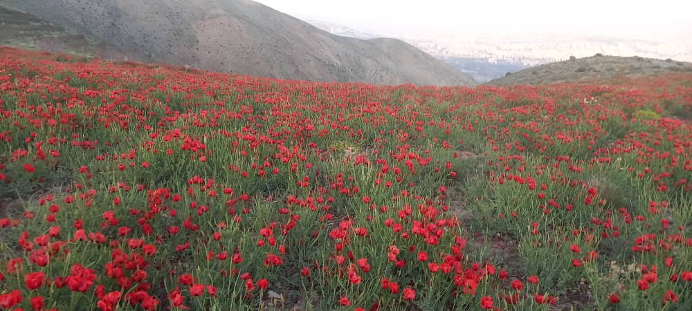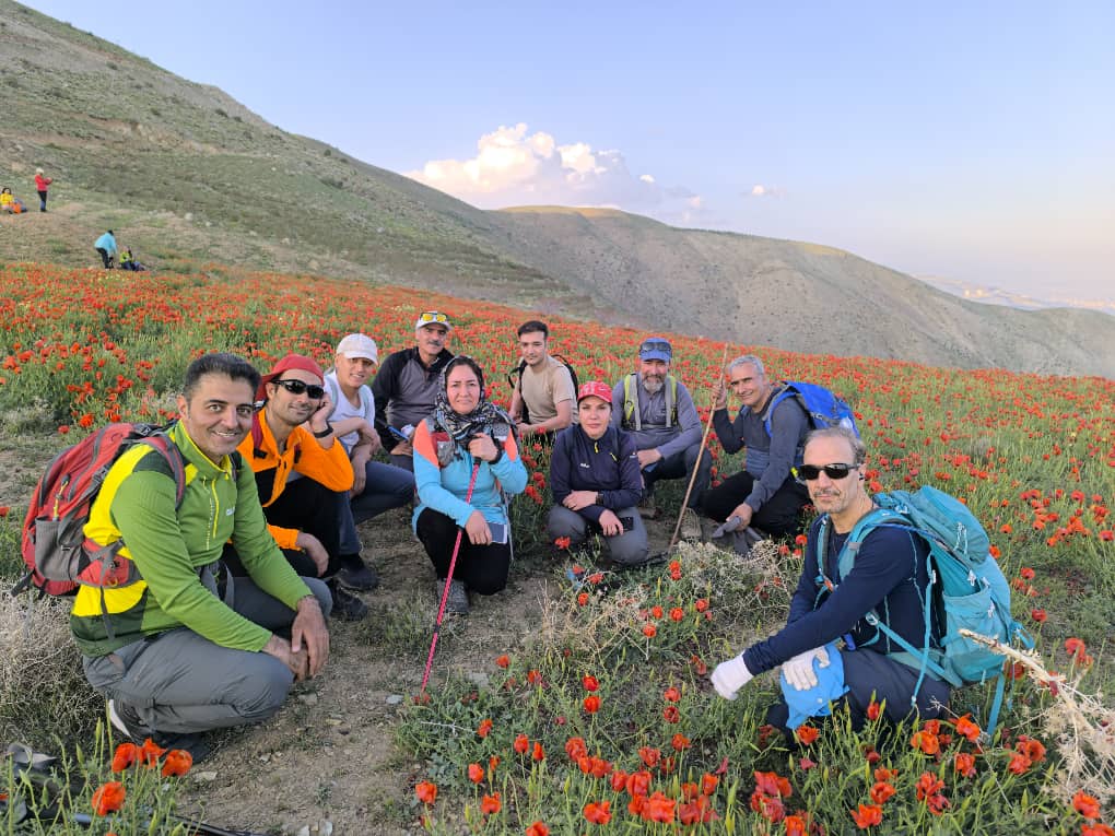 در میانه راه قله ، دشت شقایق زیبا با گلهای قرمز رنگ ، همنوردان را متحیر و شاد کرده و بدین خاطر عکس ها فراوانی گرفته شد .