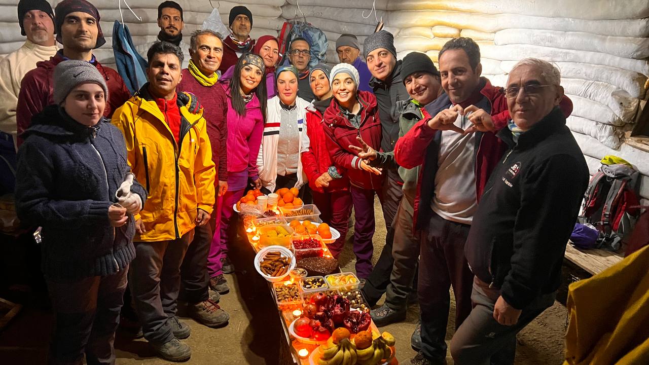 همنوردان ساعت چهار و نیم عصر از پارکینگ انتهایی پارک لتمان ، پیمایش خود را آغاز کردند و پس از رسیدن به پناهگاه امید ، مراسمی به مناسبت شب چله با خواندن فال حافظ و تزیین میز با میوه های زمستانی برگزار کردند .