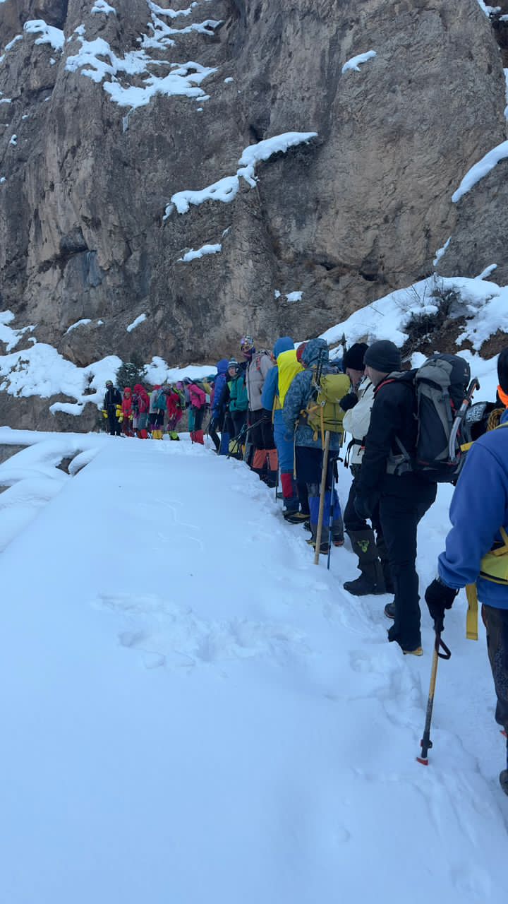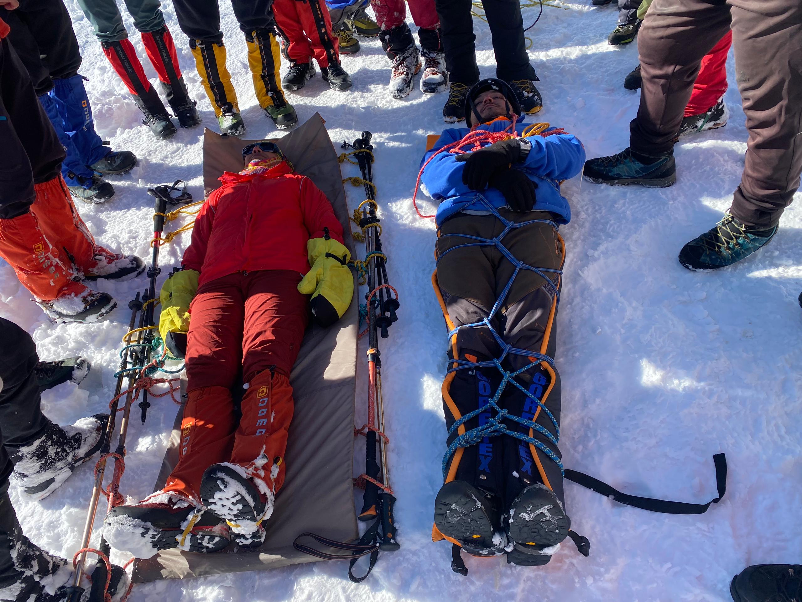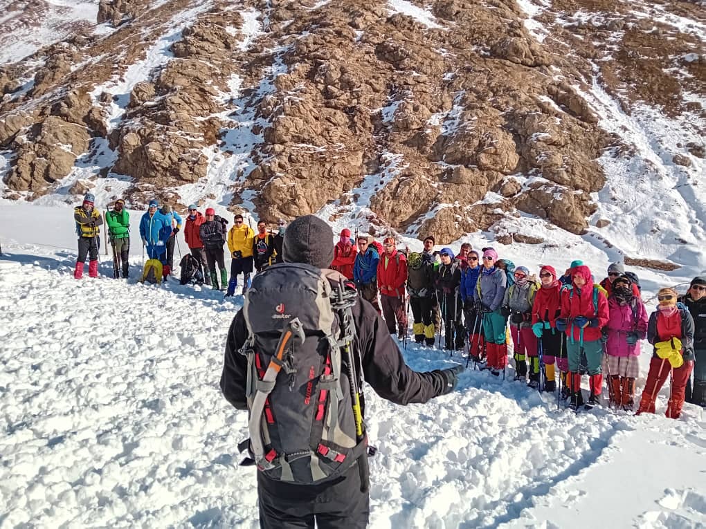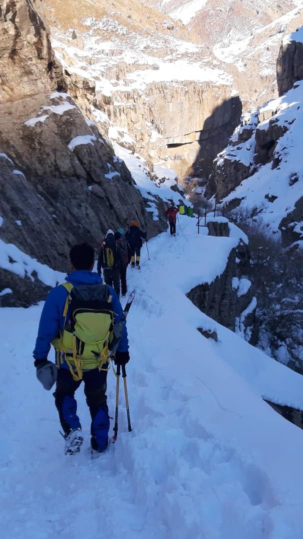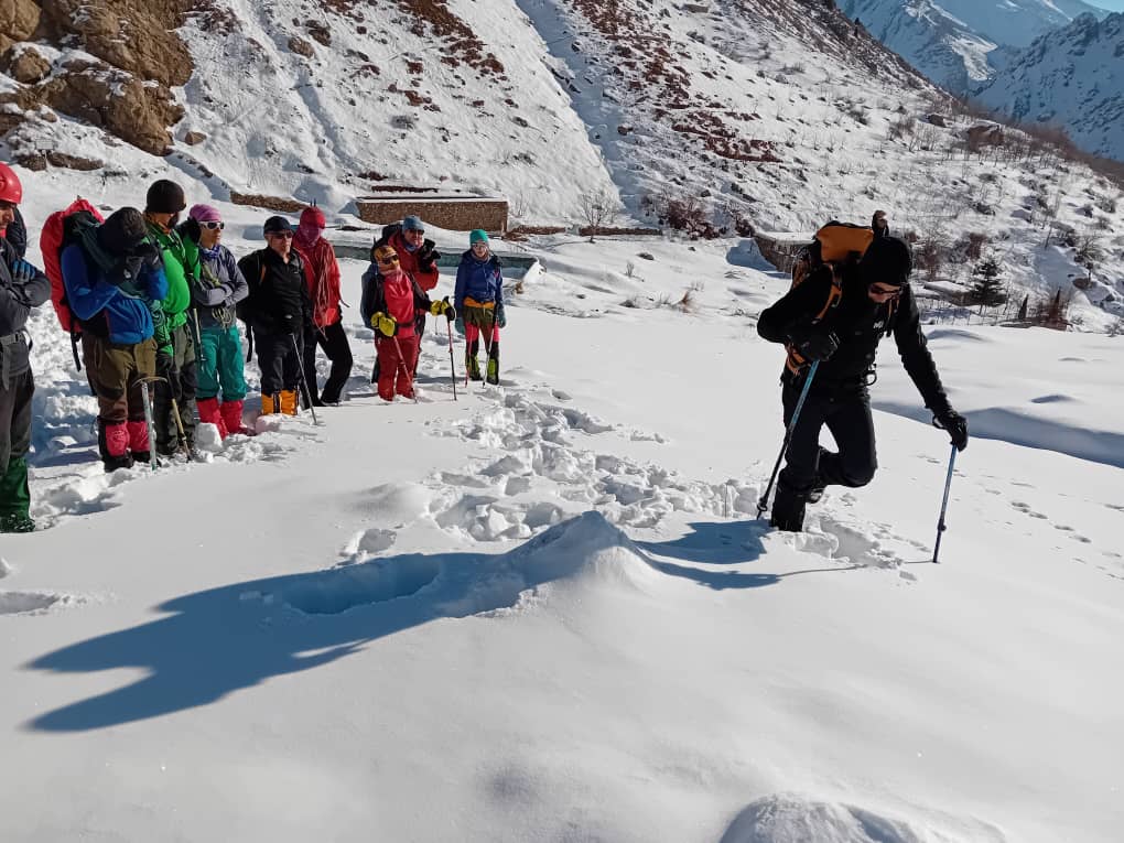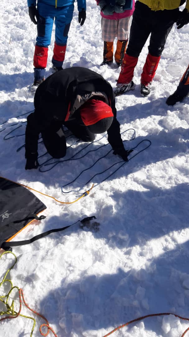 دوستانی هم که دوره های برف و یخ پیشرفته و نجات فنی و جستجو در کوهستان را گذرانده بودند در غالب یک گروه ۱۱ نفره در کنار آقای میلاد حسین زاده و آقای خلیل آبادی تمرینات زیر را انجام دادند: