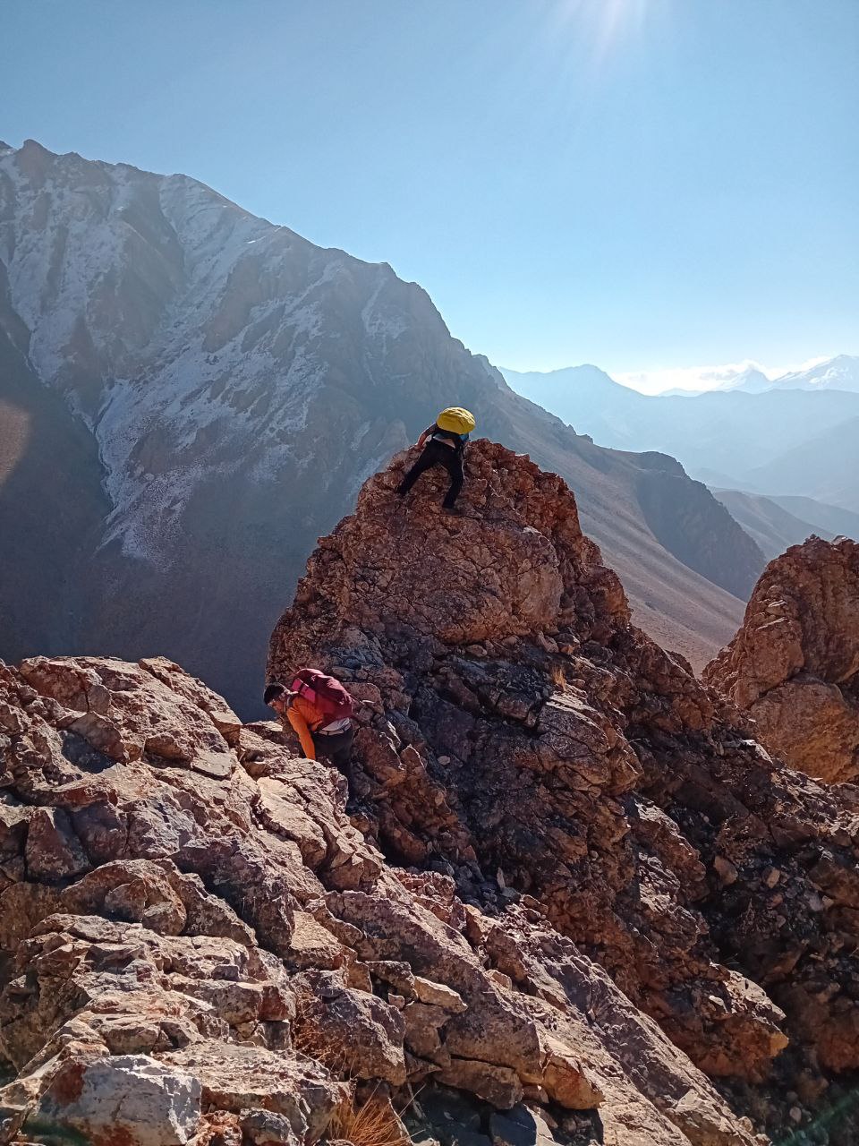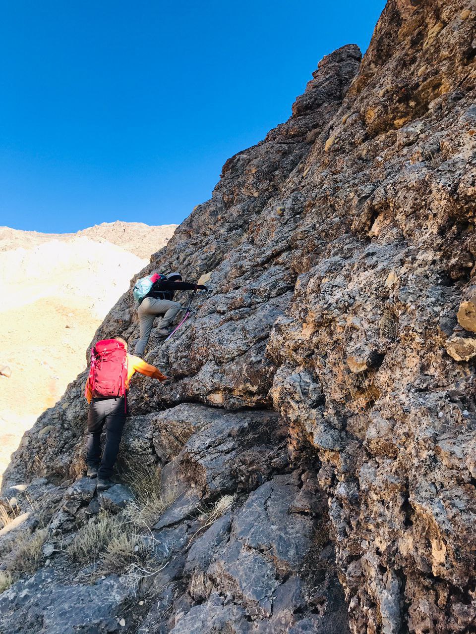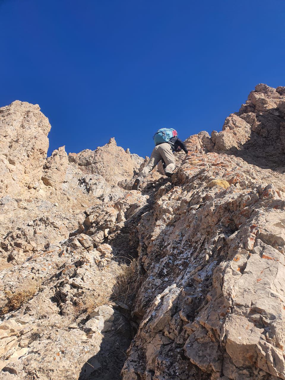 به سهیل و علی گفتم امروز از صخره صعود خواهیم کرد و از این یال به قله خواهیم رفت . کمی با تردید به دنبال مسیر گشتم و مسیری برای صعود پیدا کردم و صعود اغاز شد به عقب برگشتم و شک و تردید را در چشمان علی و سهیل دیدم اما امدند .با چند تغییر مسیر به بالای صخره رسیدیم و راهی بدون برگشت در پشت سر خود بجا گذاشتیم .