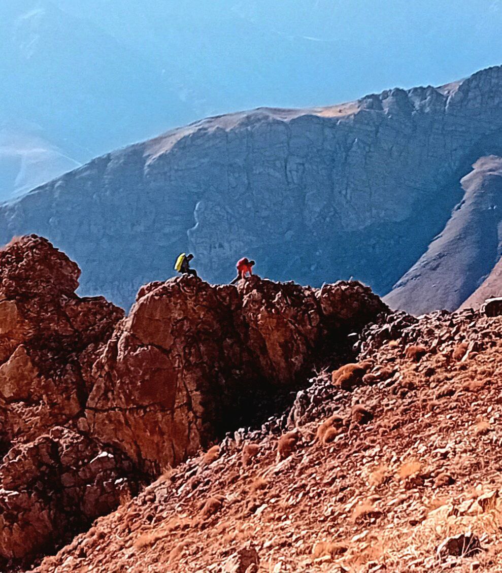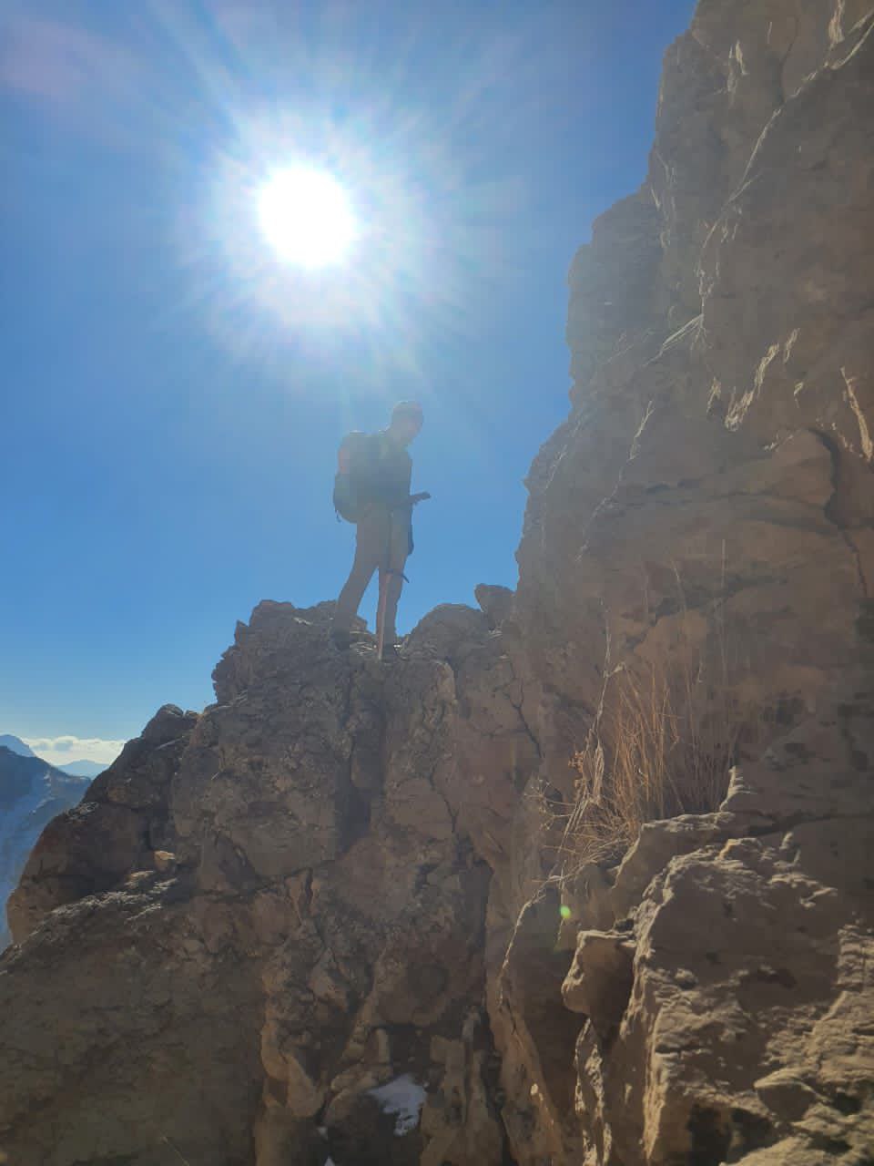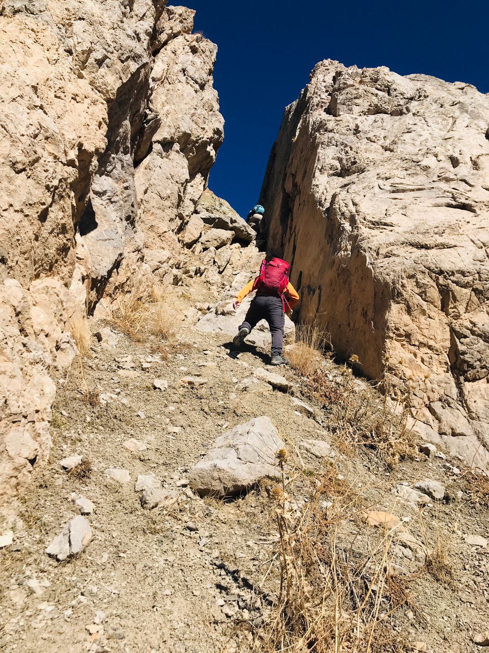 به سهیل و علی گفتم امروز از صخره صعود خواهیم کرد و از این یال به قله خواهیم رفت . کمی با تردید به دنبال مسیر گشتم و مسیری برای صعود پیدا کردم و صعود اغاز شد به عقب برگشتم و شک و تردید را در چشمان علی و سهیل دیدم اما امدند .با چند تغییر مسیر به بالای صخره رسیدیم و راهی بدون برگشت در پشت سر خود بجا گذاشتیم .
