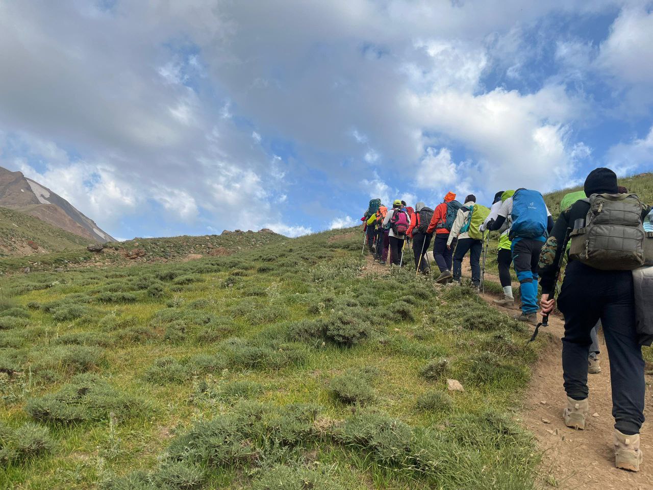 ساعت ۶ صبح بهمراه ۲۳ نفر از اعضا باشگاه از تنگه گلو صعود را اغاز کردیم هوا نه تابستانی که بهاری بود و بعضی از همنوردان مجبور به پوشیدن پلار و گرتکس شدند .