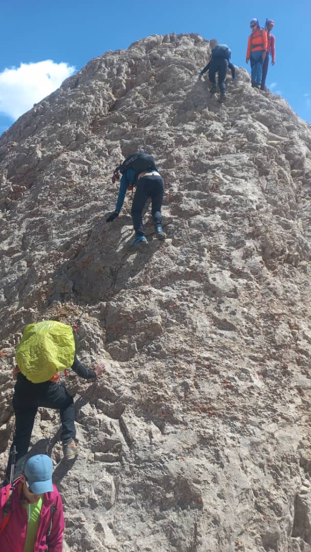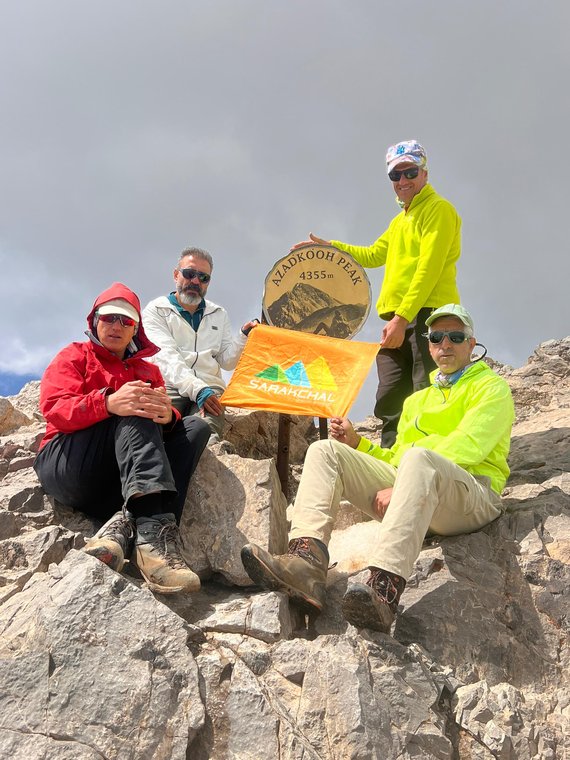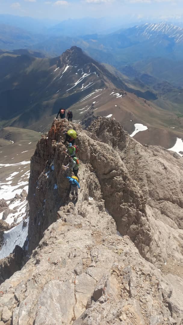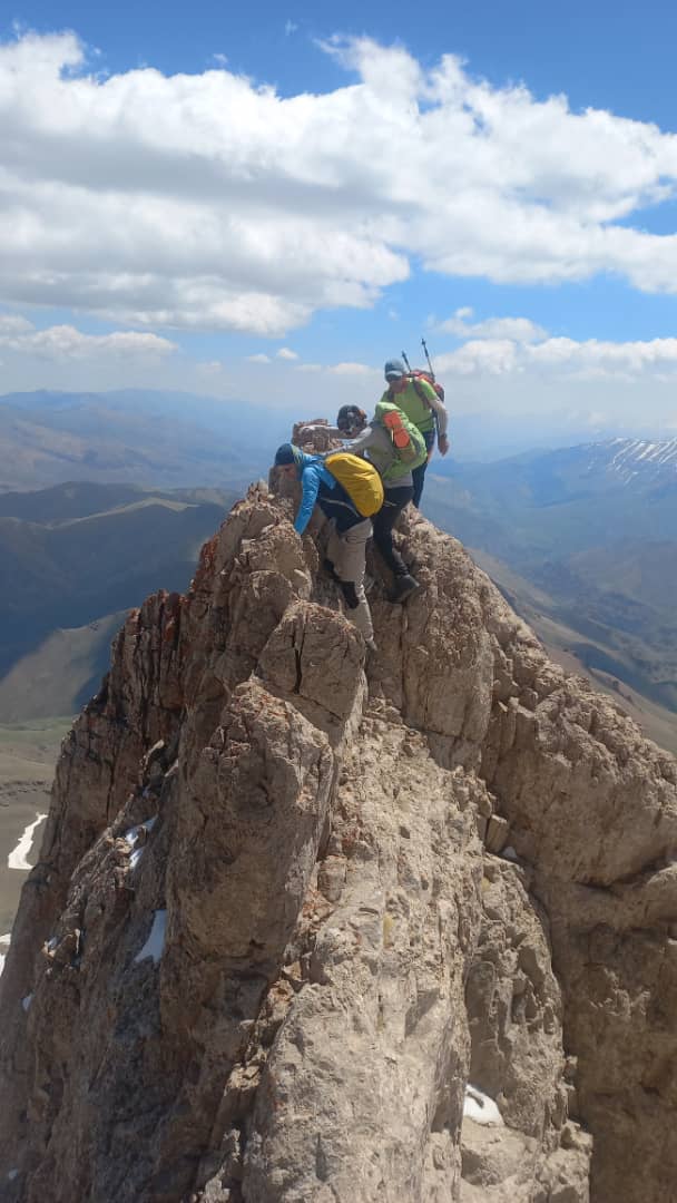 تیم ما وسواس خاصی داشت ، یعنی سرپرست برنامه ، که کاملا از روی تیغه و لبه خط الراس حرکت کنیم و این برنامه رو اجرا کنیم . چه خاطره ای شد این برنامه برای من و به یادگار . داستان درگیری با سنگ و گرده و تیغه ها تا خود قله با شماست . ارتفاع رو روی ساعتم دوباره بررسی کردم ، تقریبا 4300 متر بود . و این نوید رسیدن به قله رو میداد . ساعت 11:55 تیم پر قدرت باشگاه سرکچال به قله آزاد کوه رسید . صدای شوق و شور و شادمانی تیم ، فضا را پر کرده بود .
