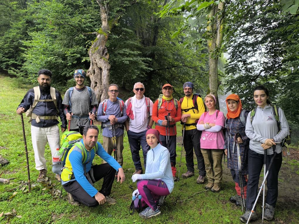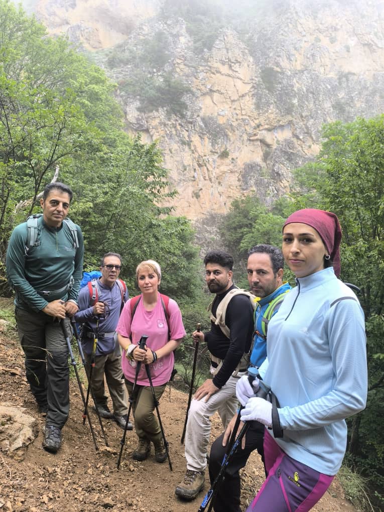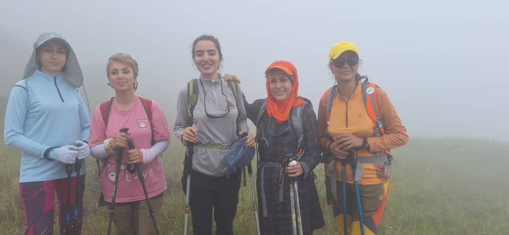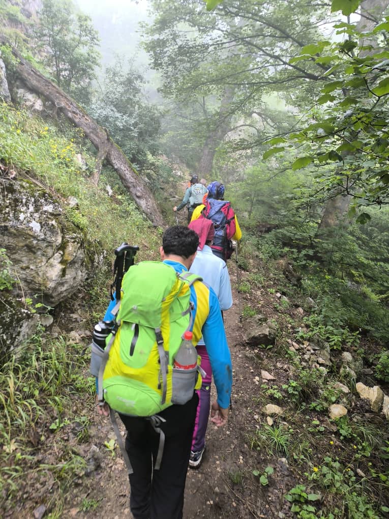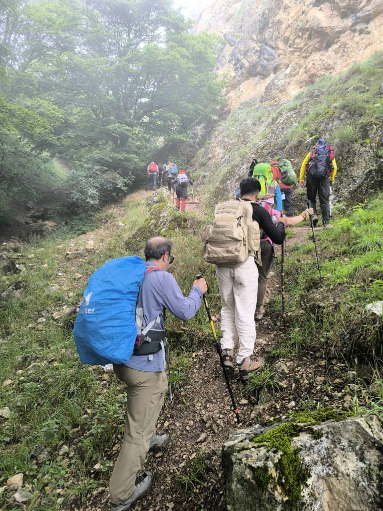 در مسیر پاکوب به سمت غرب حرکت کرده و بعد از مدتی کوتاه از روی یال به سمت شمال ارتفاع گرفتیم. بارش باران در شب قبل موجب شده بود ، طراوات خاصی را شاهد باشیم، هوای ابری ، شبنم های نشسته بر برگ های درختان ، گل های زرد و بنفش مسیر یک روز فوقالعاده را برای کوهنوردان ایجاد کرده بود .