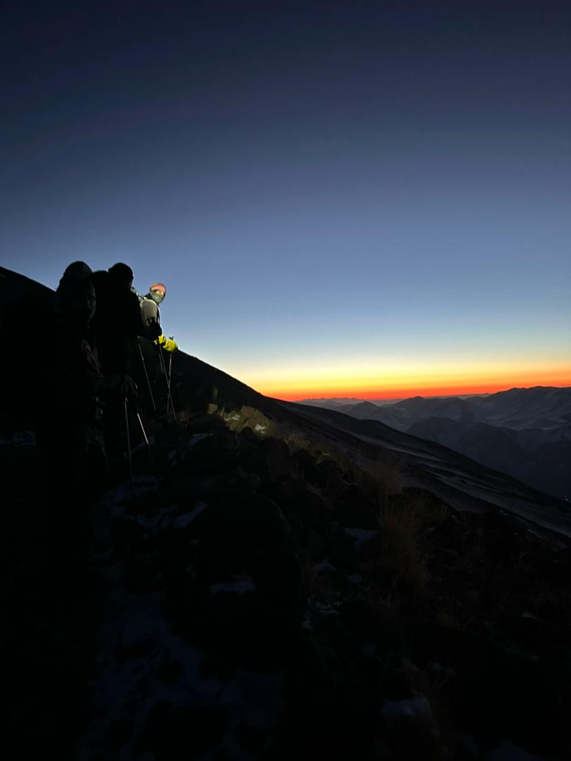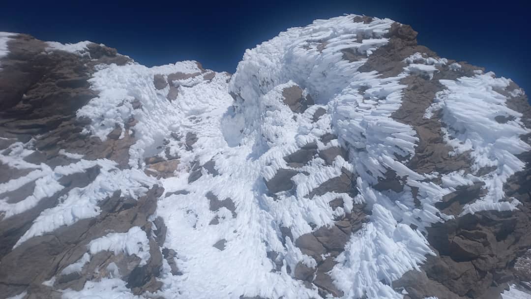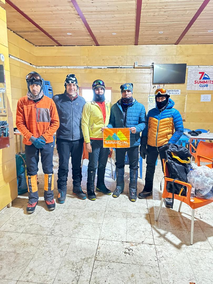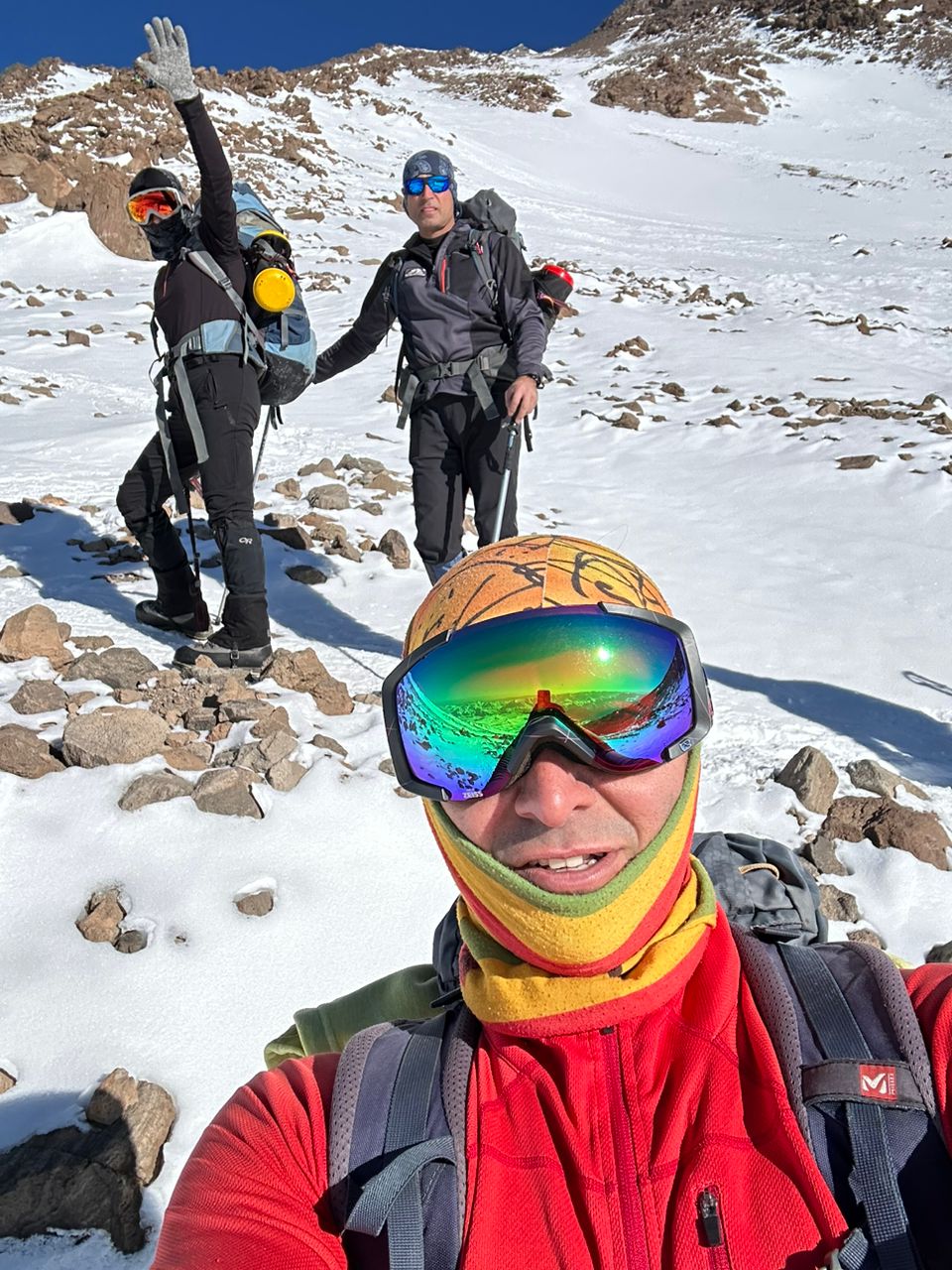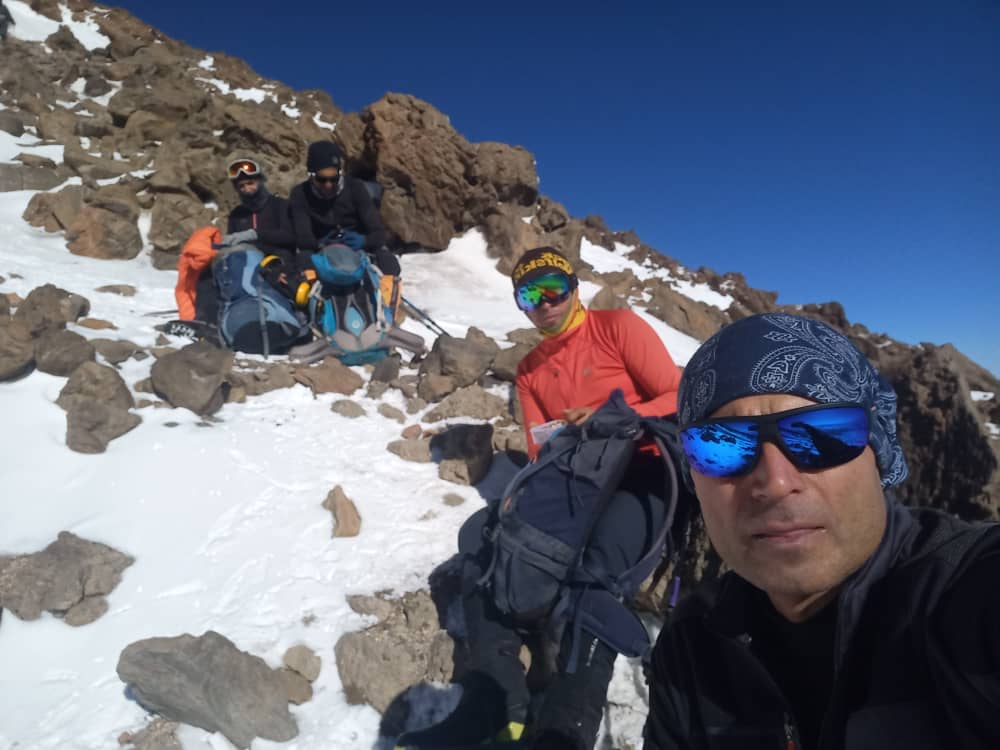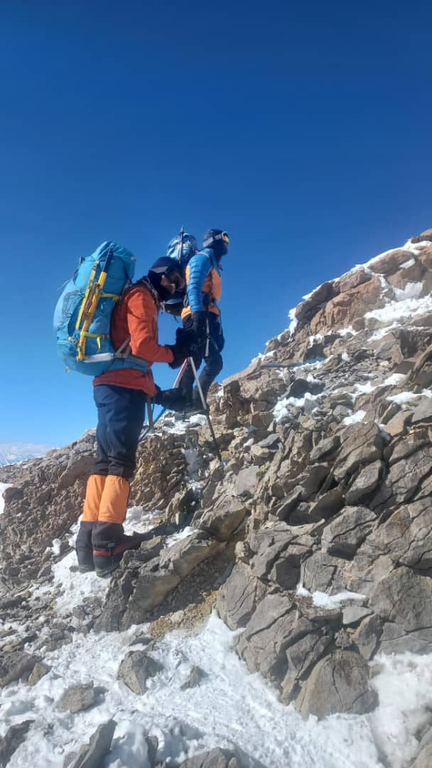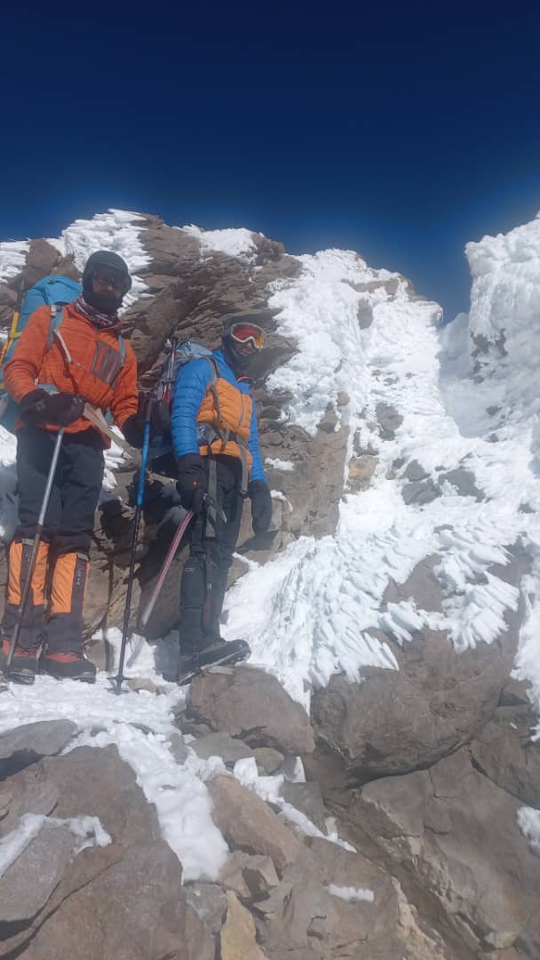 ساعت 2:45 دقیقه صبح جمعه صعود آغاز شد (حدودا 2 کیلومتر مانده به گوسفند سرا ). برف چندانی در مسیر نبود بعد از نیم ساعت پیمایش به گوسفند سرا رسیدیم، برودت هوا حدودا 10 درجه زیر صفر بود و ما با کوله های سنگین ادامه مسیر میدادیم در ساعت 7 صبح به بارگاه سوم رسیدیم ،برای خوردن صبحانه به پناهگاه رفتیم ،متاسفانه آقای زیودار بدلیل سرما خوردگی از ادامه صعود انصراف دادند .بعد از صبحانه آماده حرکت شدیم ،نیازی به استفاده از کرامپون نبود و برف پاکوب شده بود ، با طلوع آفتاب هوا گرمتر شده بود ،آرام آرام در یک هوای بسیار خوب و مسیری با برف کوبیده شده ادامه مسیر دادیم چند تیم جلو تر از ما نیز در حال حرکت بودند ، در ارتفاع حدود 4700 همنوردی را دیدم که از تیم خود جدا شد و نشست بعد از چند دقیقه به این همنورد رسیدیم که کلاه کاسک موتور بر سر داشت و درآن هوای گرم کت پر پوشیده بود ، چند لحظه ایی کنارش ایستادیم و پرسیدم چرا از تیمت جدا شدی گفت من تنها صعود میکنم و من توصیه های کردم مبنی بر عدم صعود انفرادی در این فصل، ایشان توجه چندانی نکرد گذشتیم ،در ارتفاع 5000 اقای مکی به صلاح دید خودشان از ادامه صعود انصراف دادند و به بارگاه سوم برگشتند.ساعت 14:10 به قله رسیدیم ، روی قله بادی نبود و سرمایی هم نبود حدودا همان منفی 10 ،چند عکس و فیلم کوتاهی و فرود .
