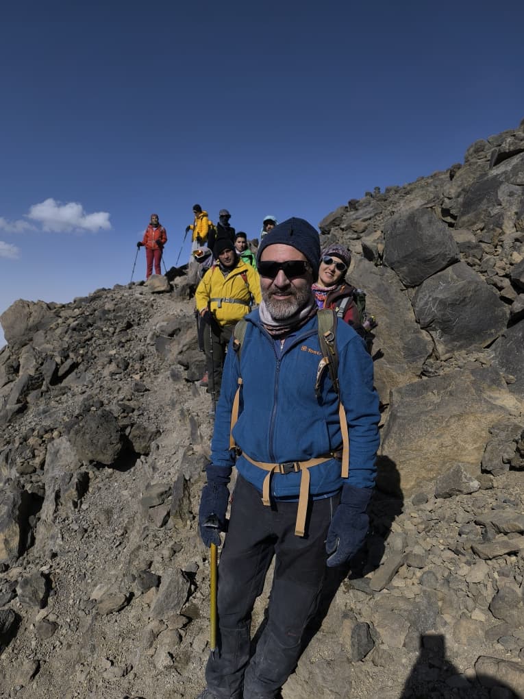 ساعت 5:30 صبح برای صعود آماده شدیم ام 3 نفر دیگر از اعضا از صعود انصراف دادند . تیم 15 نفره ما با آهنگی ارام و در هوایی خوب صعود را آغاز کرد. بعداز گذر از چند چالش دست به سنگ و عبور از یخ در ساعت 11:50 بر فراز قله دماوند ایستادیم. پس از کمی استراحت و گرفتن عکس قله در ساعت 12:30 فرود آغاز شد، به جانپناه 4000 رسیدیم و سپس به سمت سنگ بزرگ ، اولین نفرات ساعت 8:30 و آخرین نفرات خسته ساعت 10شب به سنگ بزرگ رسیدم .