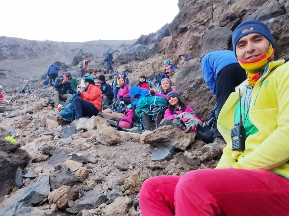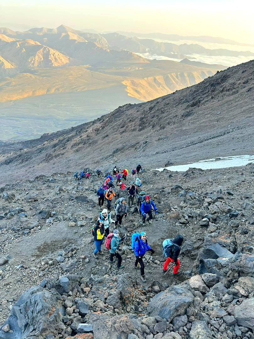 شبی ارام را پشت سر گذاشتیم و ساعت ۳:۳۰ دقیقه روز جمعه ۱۹ مرداد صعود به سمت قله را اغاز کردیم .در چهره همنوردانی که برای اولین بار صعود میکردند هیجان خاصی را مشاهده میکردیم .