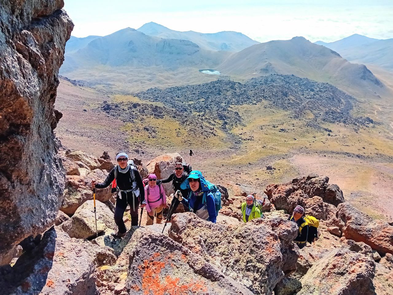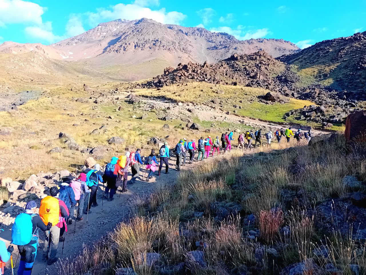 پس از گذر از اردبیل و سرعین، تابلوها به سمت روستای آلوارس رهنمون می شوند. حدود یک ربع پس از خروج از روستا، همچنان تا بعد از پارکینگ پیست اسکی آلوارس، می شود با ماشین ادامه داد. گوسفندسرا و چند چادر محلی در آنجا وجود دارد. از آنجا به بعد جاده خاکی کمی نامساعد است و بهتر است با نیسان ادامه داد (البته از همانجا می‌شود بدون وسیله نقلیه استارت صعود را زد، که حدود یک و نیم تا دو ساعت به مسافت اضافه می شود). یکی از همنوردان (آقای ایوب سعیدی) از پیست اسکی آلوارس به صورت انفرادی به قله های هرم ۱و۲و۳ صعود کرد. از قبل با دو دستگاه نیسان هماهنگ کرده بودیم‌. تقریبا نیم ساعت بعد، ۷ صبح به گوسفندسرای دوم (قره مسجد) رسیدیم(جاده همچنان مقداری ادامه دارد اما ماشین ها نهایتا تا گوسفندسرا میروند) و ده دقیقه بعد ۳۱ نفر کوله به دوش آماده حرکت بودیم. مسیر تقریبی جنوب شرق به شمال غرب. ترجیح دادیم از کنار همان مقدار جاده ای که مانده بود وارد تپه هایی با شیب ملایم شویم و از میان سنگهای کوچک و بزرگ که در پهنه پیش روی، سرتاسر زمین پخش بودند حرکت کنیم تا به ابتدای پاکوب شن اسکی برسیم. آنجا به سه گروه تقسیم شدیم.‌ ۵ نفر سرعتی شیب شن اسکی را بالا رفته و در ارتفاع ۴۱۰۰ به شرق تغییر جهت دادند تا کم کم روی گرده های سنگی قرار بگیرند. تیم دوم متشکل از ۱۲ نفر از یال صخره ایی غربی موازی مسیر شن اسکی (مسیر نرمال صعود) به سمت قله ادامه مسیر دادند و ۱۴ نفر مسیر شن اسکی را تا انتها در پیش گرفته و سپس با رسیدن به زیر گرده سنگی، بیشتر به غرب متمایل شده (محل تقریبی برخورد با تیم دوم) و با عبور از میان پاکوب شن اسکی مشخص و گاهی تکه سنگ ها، تا قله ادامه دادند. قبل از رسیدن به این قسمت یکی از همنوردان از ادامه صعود انصراف داد و به گوسفندسرا برگشت. تیم سرعتی پس از عبور از میان گرده سنگی در ۱۱:۲۰ دقیقه موفق به قرار گرفتن در کنار دریاچه بدون یخ‌زدگی روی قله شدند. نفرات تیم دوم و سوم هم به تناوب به قله رسیدند و تا ۱۳:۳۰ تمامی نفرات، پس از گذر از کنار سنگ زیبای محراب، روی قله حضور داشتند. پس از نیم ساعت لذت بردن از منظره زیبای دریاچه و هوایی بسیار مساعد، در ۱۴ فرود را از مسیر نرمالِ برگشت به آلوارس (مسیر صعود تیم سوم) آغاز کردیم. تمام مسیر شن اسکی بود و میشد در زمان کوتاهی به گوسفندسرا رسید. اولین نفرات ساعت ۱۶:۱۵ و آخرین نفرات در ۱۷ به گوسفندسرا رسیدیم و مسیر مشابه رفت، نیسان و سپس ماشین شخصی را طی کردیم تا به روستای آلوارس رسیدیم.