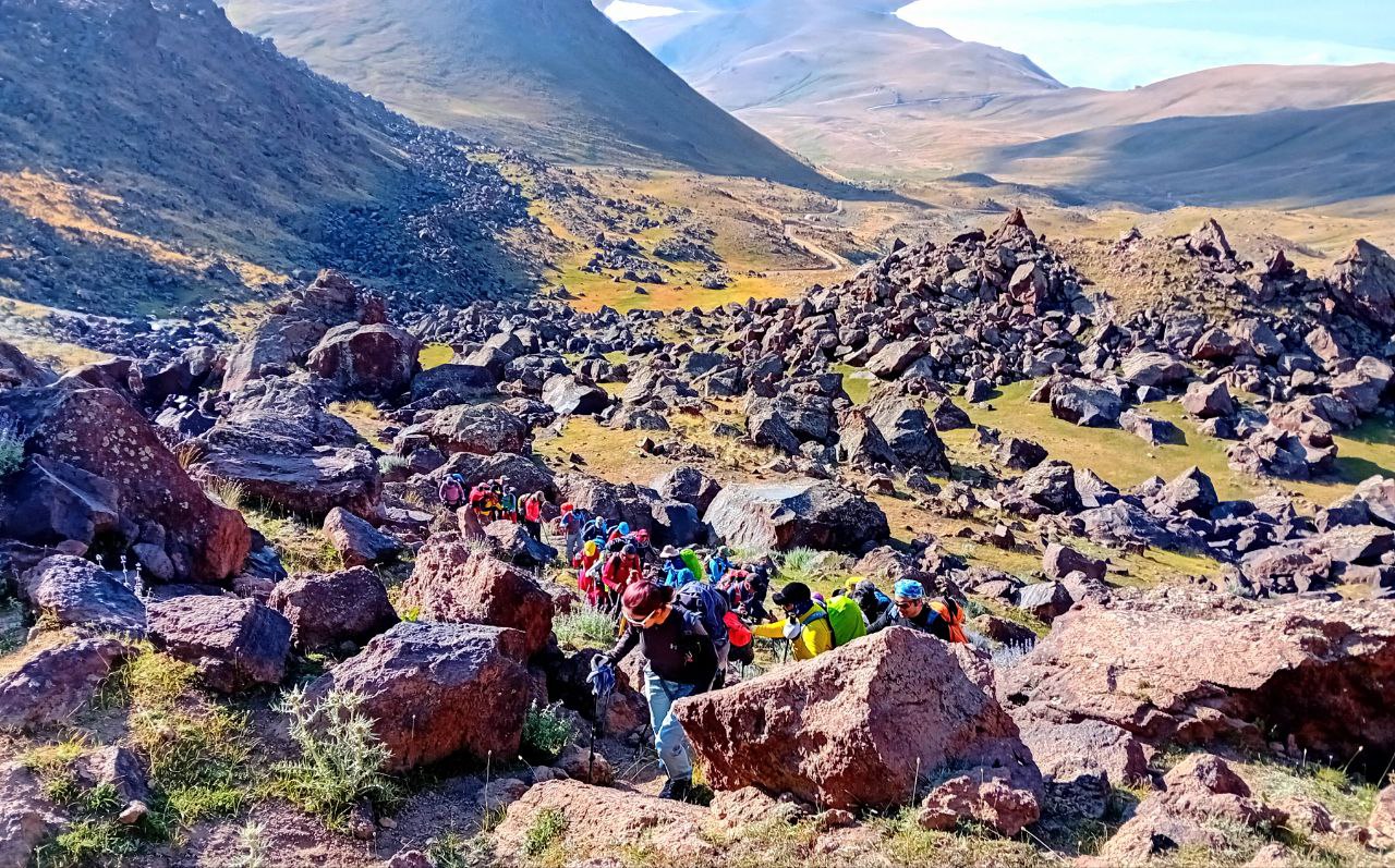 سبلان در زیبایی چه کم از عروس ایران سهند دارد! این بار سبلان به تمام معنا در قبای عروس بود. آسمون آبی مزین به تکه های ابر. در تمام طول مسیر به پشت که نگاه می انداختی جنگل مه مثل دامنی سپید دور تا دور کوه بود. همون ابتدای مسیر که از جاده به دامنه ها پناه بردیم،‌ سنگهای کوچک و بزرگ خوش تراش مانند درختان باغ جا به جا با فاصله کاشته شده بودند، هر کدام با شمایلی که در ذهن تو میگذشت. بعد از شیب شن اسکی به خود که آمدیم دیدیم سنگهای غول پیکر به سان اجداد کوهستان، راست قامت و مقتدر منطقه را نگهبانی می‌کنند و تو را به بالا می‌خوانند. بالاتر شگفت انگیزتر. و در نهایت دریاچه ای آبی و آرام. انعکاس آبی آسمان را هم به آن اضافه کن. با دُورچینِ برف. و جنبش شورانگیز کوهنوردان که منتظرانِ این فصلند برای بار عام…