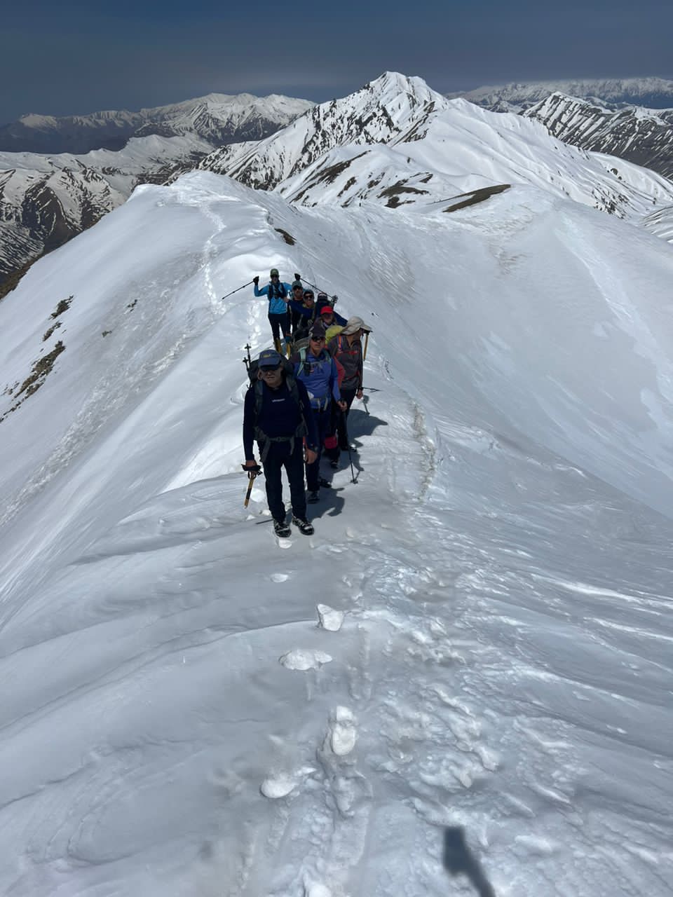 روز جمعه ۱۴۰۳/۲/۷ همراه با ۵۲ نفر از همنوردان عزیز باشگاه سرکچال عازم منطقه شمشک و روستای سپیدستون شدیم. این برنامه طبق برنامه ریزی های قبلی همراه بود با چهارمین سالگرد آسمانی شدن همنورد و رفیق قدیمی ما مرحوم حسین صادق زاده، کوهنورد قدیمی که قربانی بهمن سرکچال ها شد و از بین ما رفت. حدود ساعت ۶ صبح از پارکینگ سپیدستون برنامه رو استارت زدیم. ارتفاع روستا ۲۴۰۰ متر و ارتفاع قلل سرکچالها از ۴۱۰۰ تا ۴۲۰۰ متر متغیر هستند.از قبل مسیری رو انتخاب کرده بودم که کم تردد بود و سالهای قبل همراه حسین عزیز صعود کرده بودیم.
