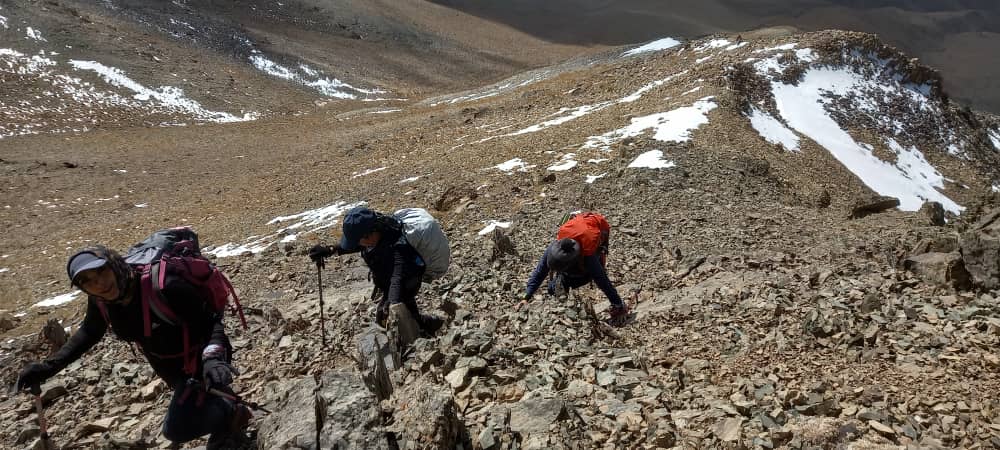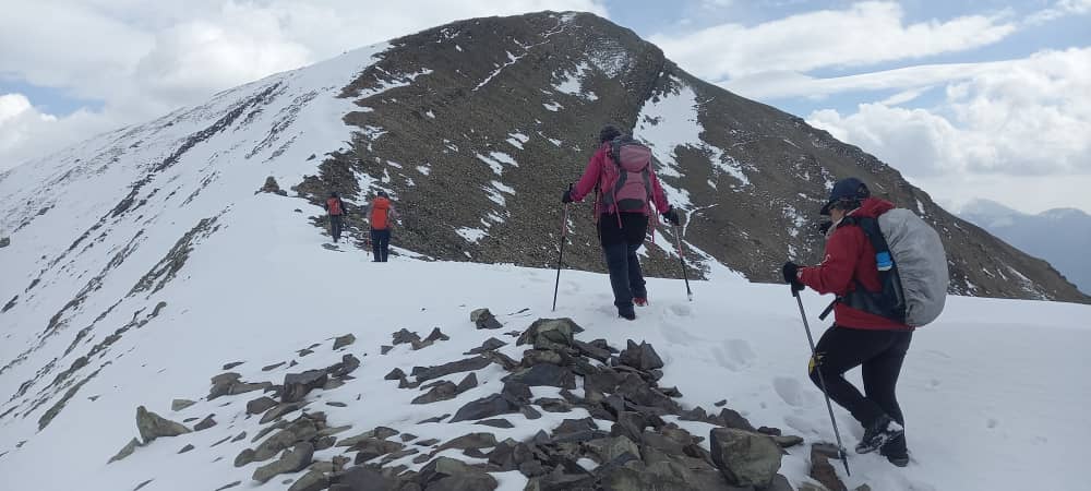 قبل از اینکه به پناهگاه لجنی برسیم تصمیم گرفتیم از یک یال چالشی تر که پاکوب ندارد ، به سمت خط الراس صعود کنیم .