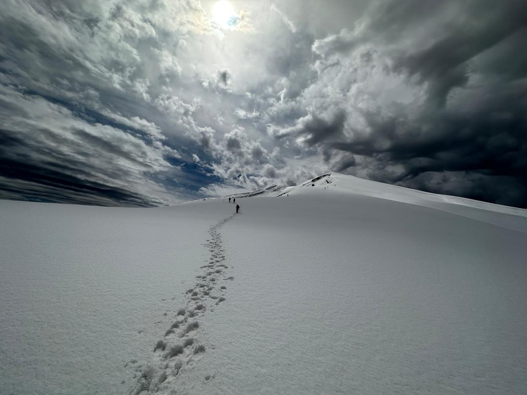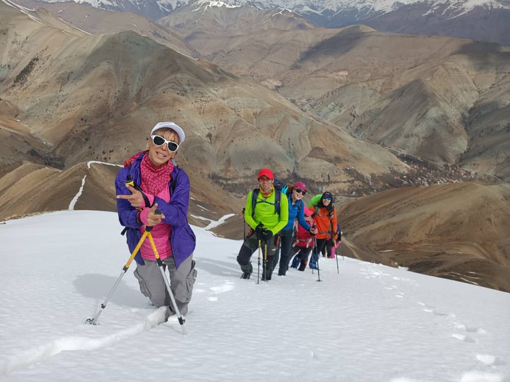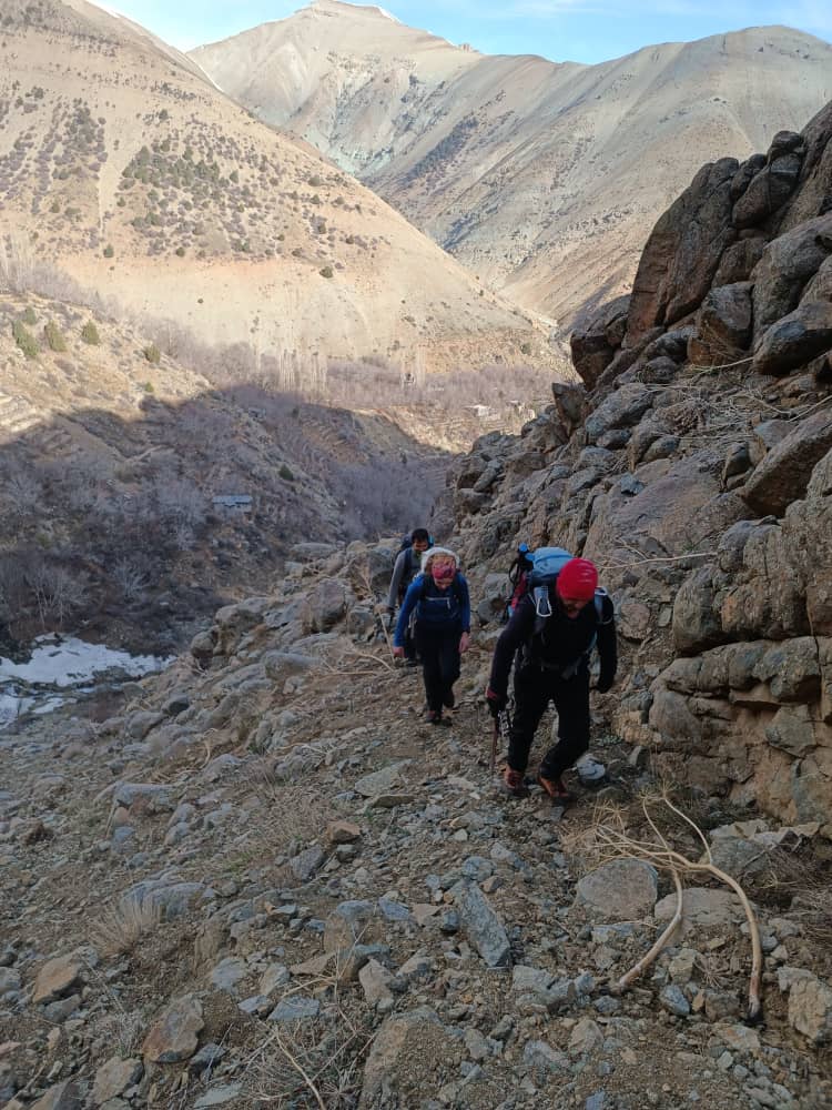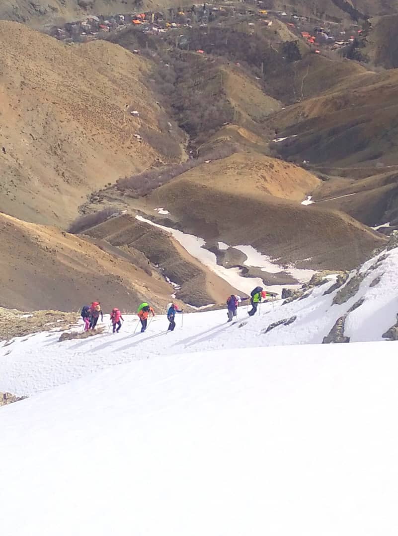 در کمتر از یکساعت به آبشار های ایگل رسیدیم .آبشار اصلی را بازدید کردیم و چند عکس به یادگار گرفتیم و دو نفر از همراهان در کنار آبشار ماندگار شدند و ما بهمراه ۹ نفر از همنوردان از کنار آبشار دوم که در ضلع شرقی این منطقه قرار دارد ادامه صعود دادیم .بعد از حدود نیم ساعت پیمایش به بالای آبشار رسیدیم و در کنار آبشار به صرف صبحانه پرداختیم .ارتفاع حدودا ۲۴۰۰ را نشان می‌داد و منطقه تقریبا پوشیده از برف بود . بدلیل اینکه مسیری جدید را برای صعود به قله انتخاب کرده بودیم و شناختی از مسیر نداشتیم من و آقا مجید کمی زودتر از همنوردان جدا شدیم و به شناسایی مسیر پرداختیم. از ابتدا احساس کردیم که برف سفت و بعضا یخ زده میباشد و سعی کردیم از مسیری صعود کنیم که درگیری با یخ و سرخوردگی نداشته باشیم هرچند در چند نقطه درگیری با سنگ و یخ هم داشتیم اما بعد از حدودا دوساعت خود را به بالای یال منتهی به قله رساندیم هر چقدر بالاتر می رفتیم حجم برف بیشتر می‌شد. بدلیل پرهیز از گرفتار شدن در ریزش احتمالی بهمن با فاصله خیلی زیاد از یکدیگر صعود را ادامه میدادیم. در ساعت ۱۱:۳۰ جی پی اس ارتفاع ۳۲۵۰ را نشان می‌داد و فاصله زمانی ما تا قله حدود ۲۰ دقیقه و آخرین شیب زیر قله اما شکل ظاهری برف نشانگر انباشت برف بود و احتمال ریزش بهمن در این شیب بیشتر.با مشورت همنوردان تصمیم به صرف نظر از ادامه صعود گرفتیم و بعد از چند عکس یادگاری به سمت روستای زیبای ایگل فرود را آغاز کردیم.