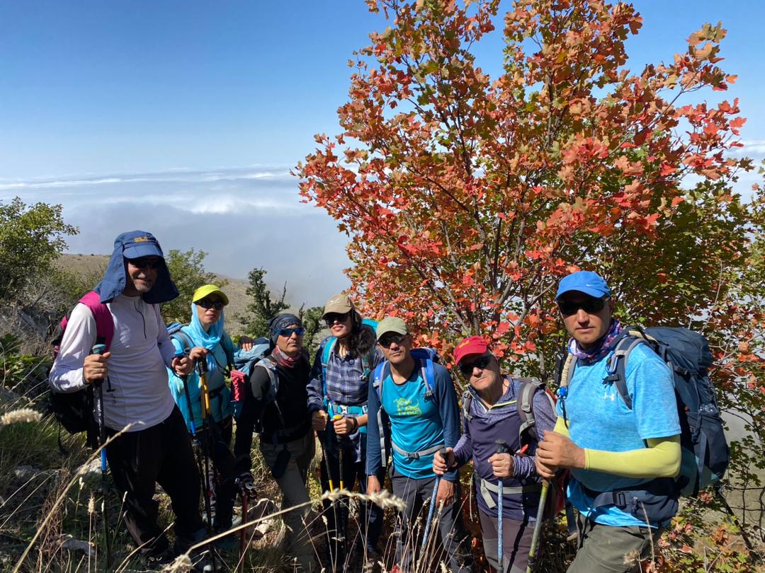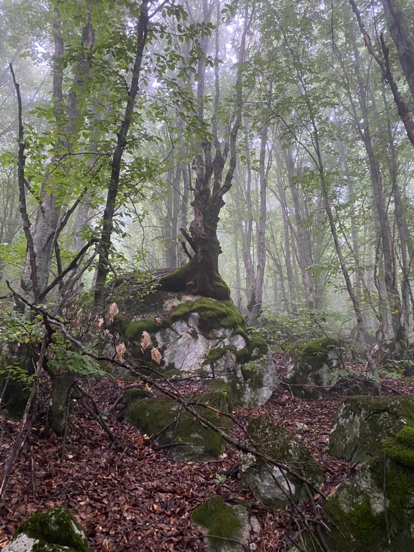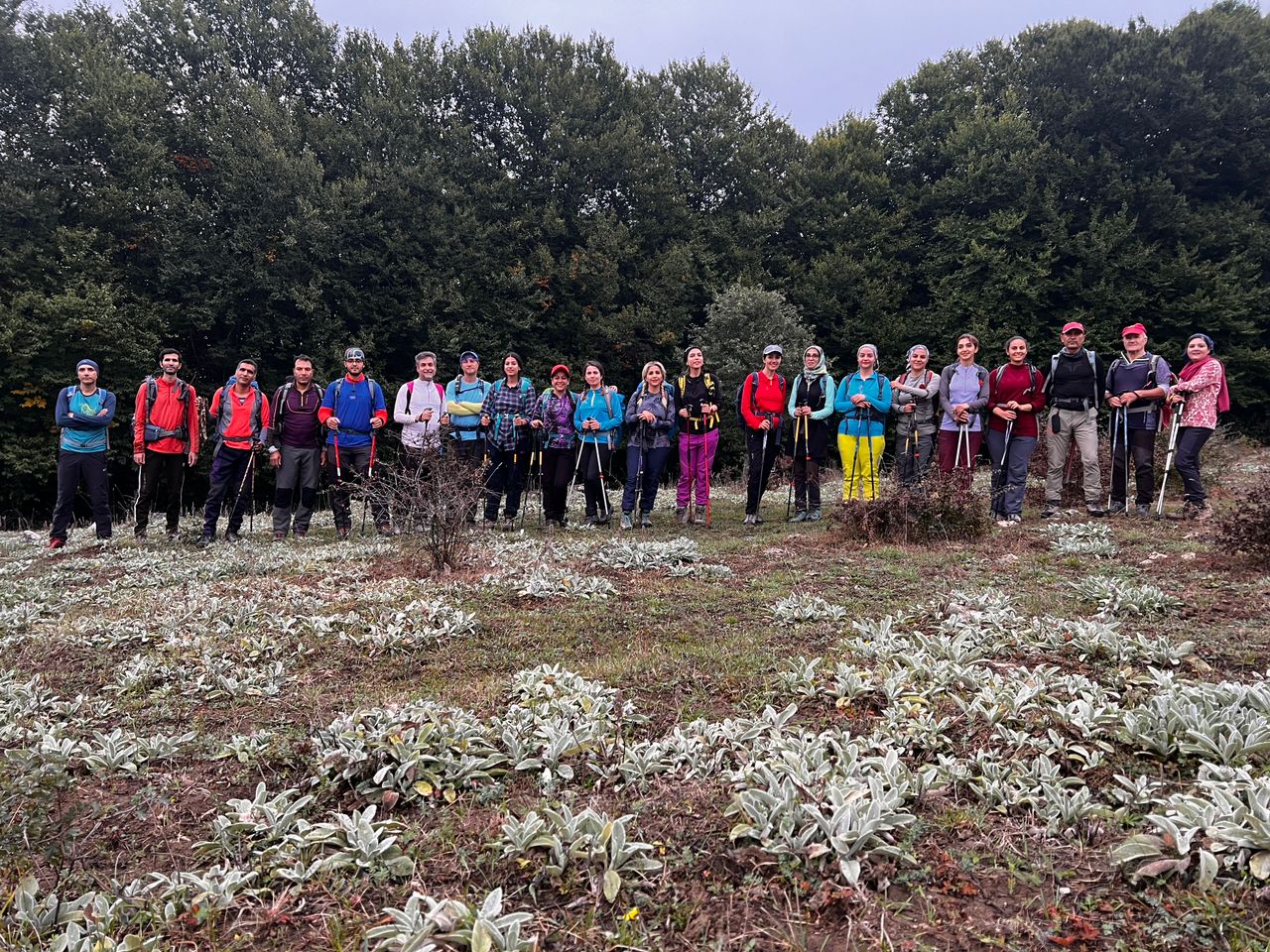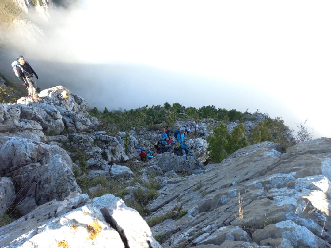 بعد از رسیدن به روستای لنگر و مستقر شدن در محل سکونت به استراحت پرداختیم . ساعت ۴ صبح جمعه بیدارباش زده شد و در ساعت ۵:۳۰ به سمت قله حرکت کردیم . هوا بسیار دلچسب عالی بود و کل منطقه در مه فرو رفته بود. ارام ارام از روستا فاصله گرفتیم و به درون جنگل زیبا خزیدیم هر چند صعود این قله پاکوبی مشخص دارد اما ما پاکوب را رها کردیم و از درون جنگل به سمت قله حرکت کردیم . سراسر مسیر لبریز از زیبای و مه بود در ارتفاع ۲۲۰۰ از جنگل بیرون امدیم و در کنار غار لنگر صبحانه را صرف کردیم .بعد از صبحانه از گرده سنگی بالا رفتیم و از فراز این گرده محو تماشای جنگل پر مه و زیبا شدیم .