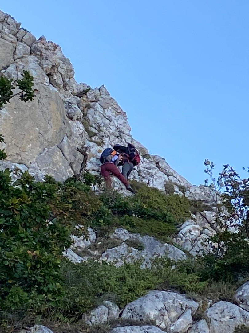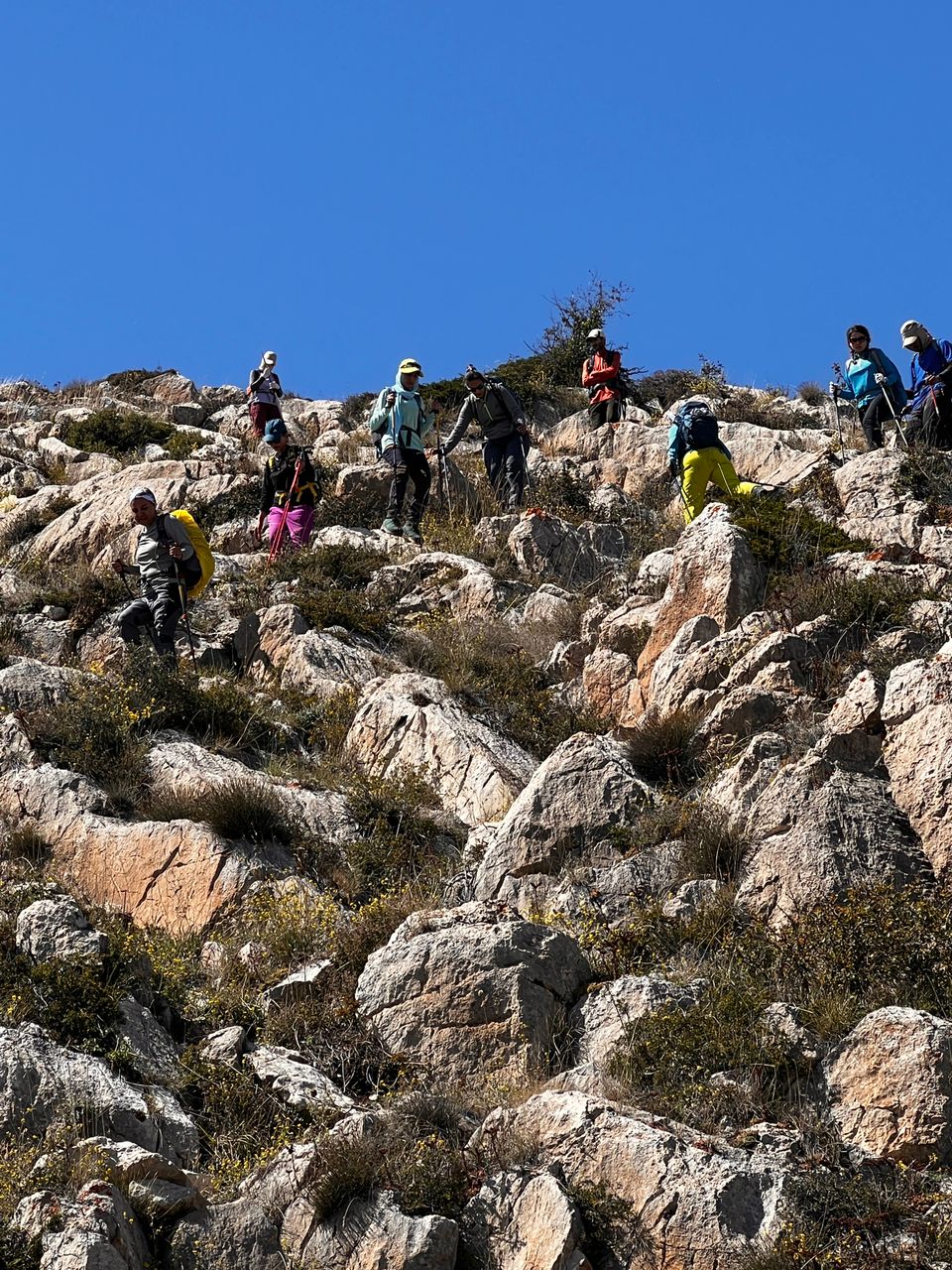 تصمیم گرفتیم بر عکس دفعات قبل اینبار قله را از یال صخره ایی شرقی صعود کنیم .چند نفر از همنوردان گرده اصلی و کاملا دست به سنگ را صعود کردند و بقیه بصورت تراورس از زیر گرده به سمت قله (غرب) حرکت کردند و نهایتا در ساعت ۱۰:۳۰ موفق به صعود قله زیبای شاهدژ شدیم.