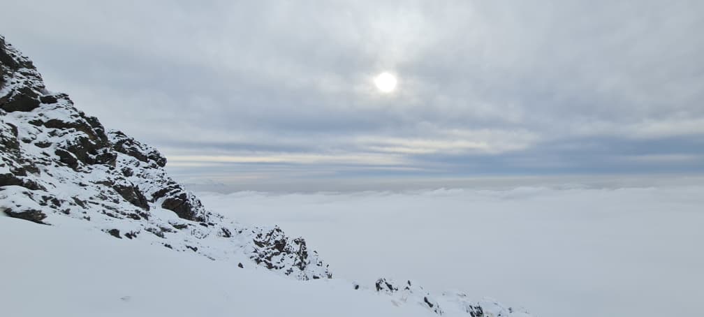 حدود ساعت ۸:۴۵، در منطقه‌ای سنگی که کاملاً پوشیده از برف بود، با وجود شرایط، توقفی حدود ۱۵ دقیقه برای صرف صبحانه داشتیم. در همین زمان، ناگهان هوا کاملاً صاف شد و منظره‌ای از دماوند و تهران بزرگ نمایان شد؛ زیر پایمان دریایی از ابر قرار داشت که جلوه‌ای چشم‌نواز به فضا می‌داد.