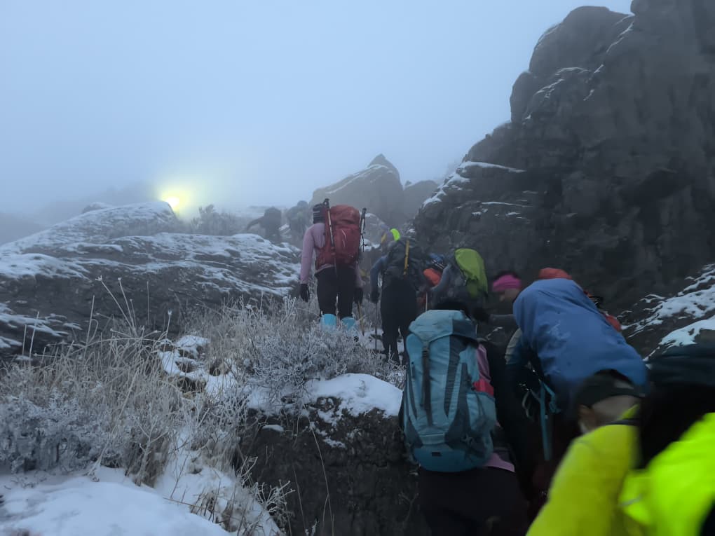 در نهایت، ساعت ۵:۴۵ حرکت تیم آغاز شد. پس از ورود به پارک و عبور از مسیر پله‌ها، در ابتدای برنامه دو نفر انصراف خود را اعلام کردند و تیم با ۲۵ نفر به پیمایش ادامه داد. مسیر کاملاً برفی بود و مه غلیظ فضا را پوشانده بود که حال‌وهوایی خاص و دلنشین به برنامه می‌داد.