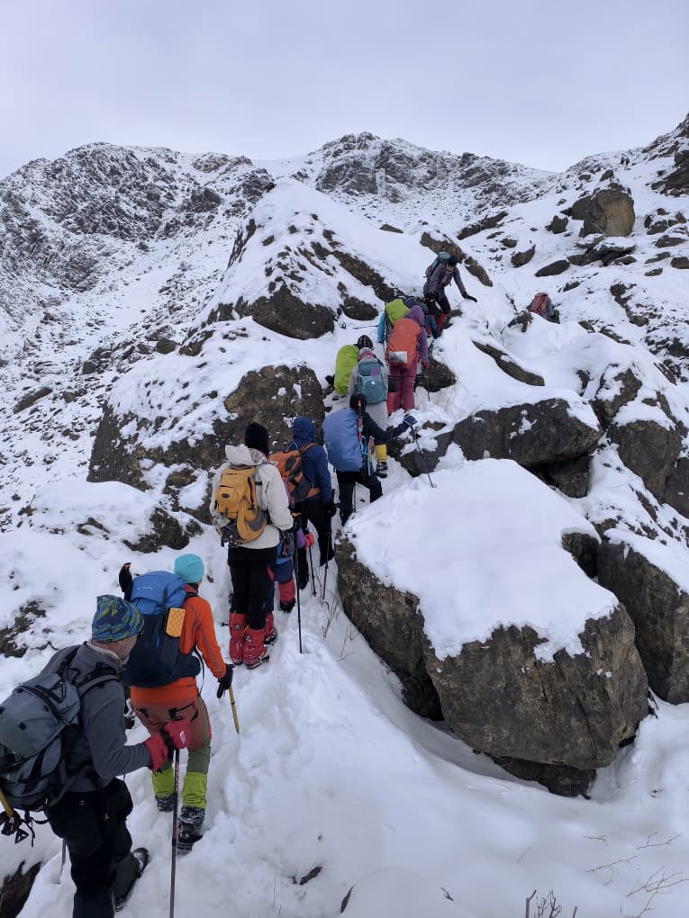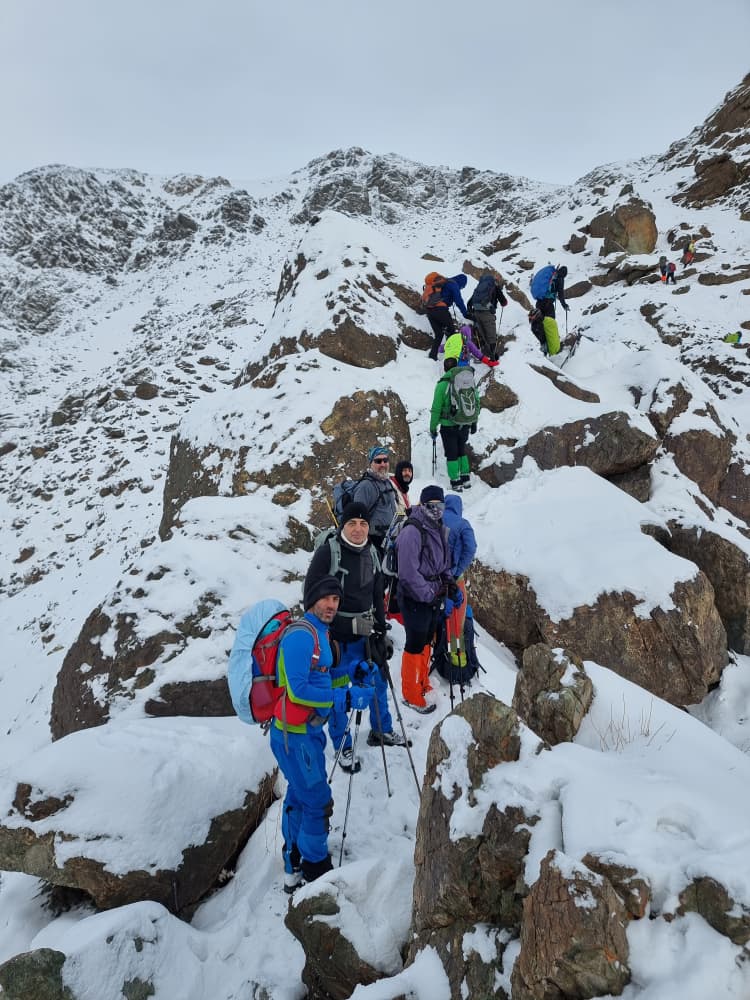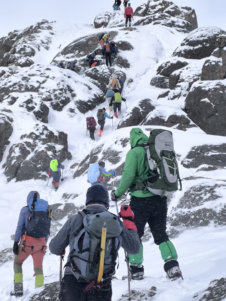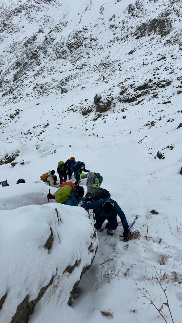 با رسیدن به بخش‌های دست‌به‌سنگ، تیم به‌تدریج وارد فاز فنی‌تر مسیر شد. آقای مکی به‌عنوان سرقدم حرکت می‌کردند و تلاش شد تیم با فاصله‌ای مناسب و به‌صورت یکپارچه مسیر را ادامه دهد. در بخش‌هایی که نیاز به کمک وجود داشت، آقای مینایی به‌خوبی از همنوردان پشتیبانی می‌کردند.