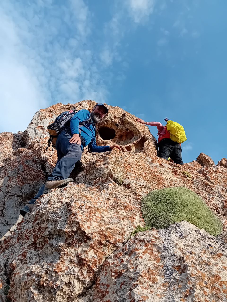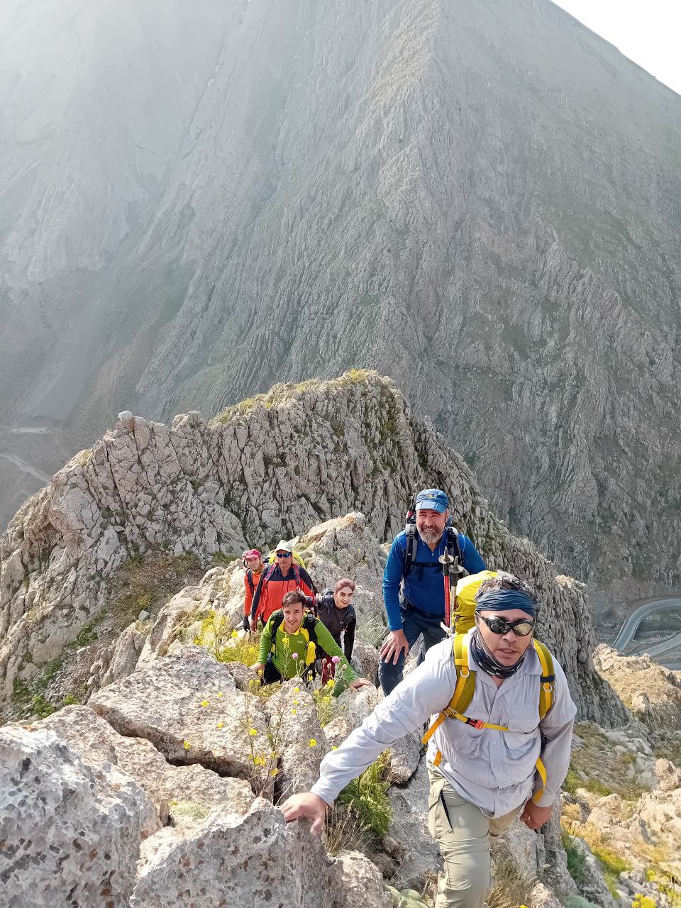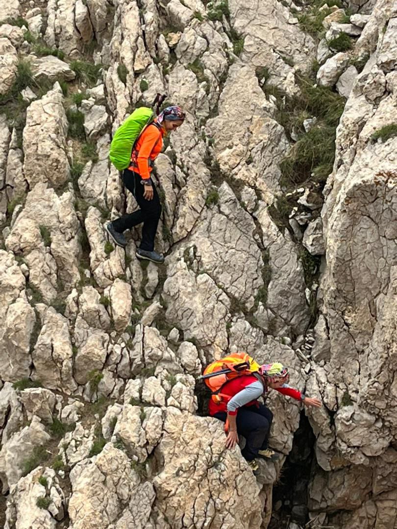 در آنجا تیم به گروههای کوچک تقسیم شد که هر گروه تحت سرپرستی مربیان و افراد با تجربه تر از گرده ها صعود کنند و در صورت نیاز حمایت شوند .در میانه مسیر ساعت ۸:۳۰ جهت صرف صبحانه و کمی استراحت توقف کردیم ، ۳ نفر از اعضای تیم از ادامه انصراف دادند و به همراه یکی از اعضای قوی با انتخاب یک دهلیز مطمئن از ارتفاع ۳۲۰۰ برگشتند .