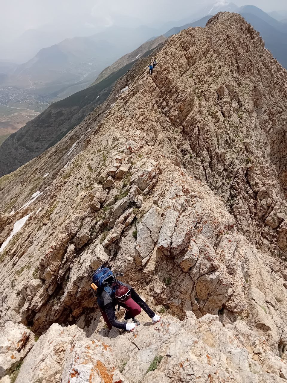 ساعت ۱۳ به سمت دهلیزی که برای فرود در نظر گرفته شده بود حرکت کردیم. این دهلیز کمی پایین تر از قله شرقی به سمت غرب می باشد ، ابتدای دهلیز دارای شیب تند است ولی بعد شیب آن کمتر شده و به مرور میبایست در قسمت پایینی و مطلوب ترین حالت به موازات خط الراس به سمت جنوب حرکت کرد .