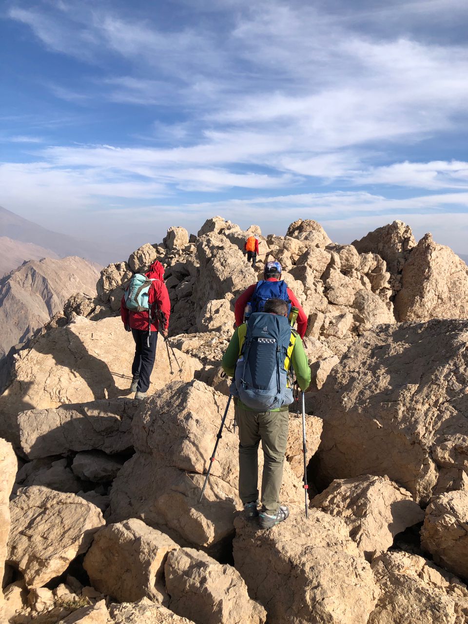 در ادامه با دست به سنگهای فراوان و فراز و فرود های زیاد،چکاد آسمان کوه با ارتفاع ۳۸۱۰ متر در ساعت ۱۴/۲۰ دقیقه صعود شد.