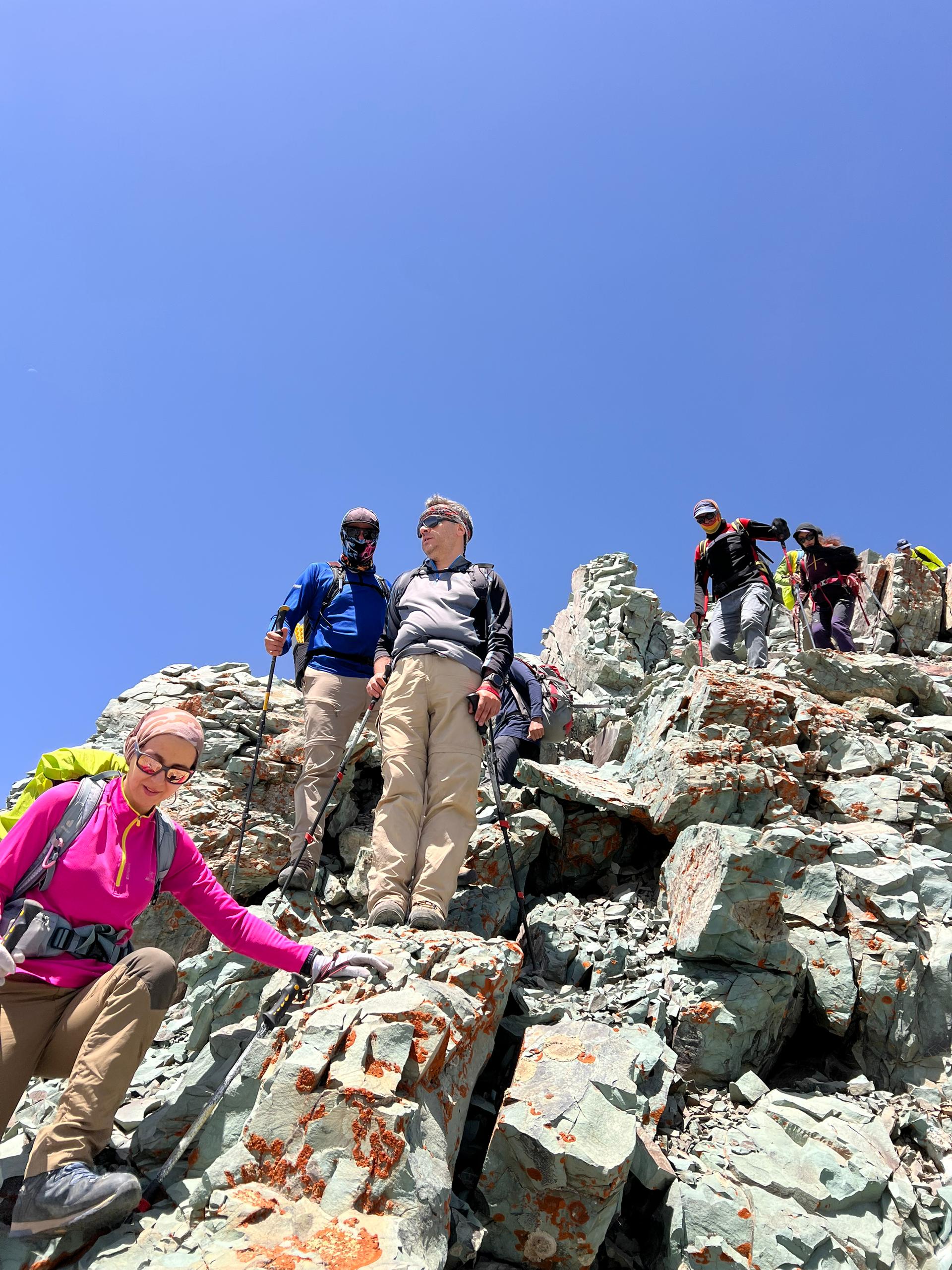با گذر از مسیر دست به سنگ و شیب نزدیک به قلّه ساعت ۱۲ موفق به صعود قلّه ریزان شدیم