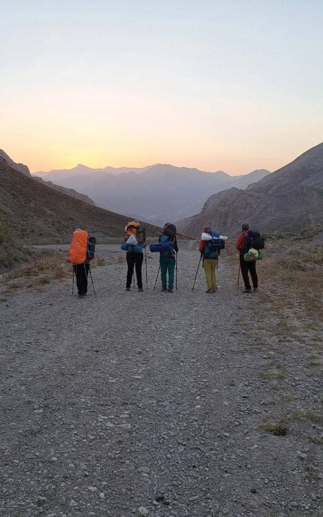 ساعت ۵ صبح برنامه پرچالش پیش رو را با کوله های سنگین آغاز کردیم.