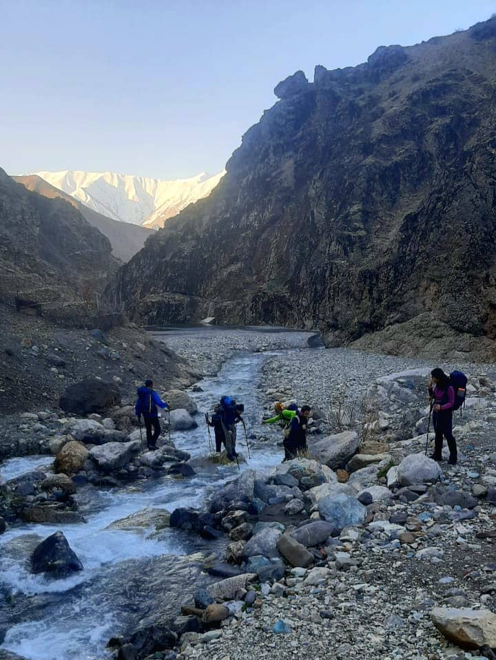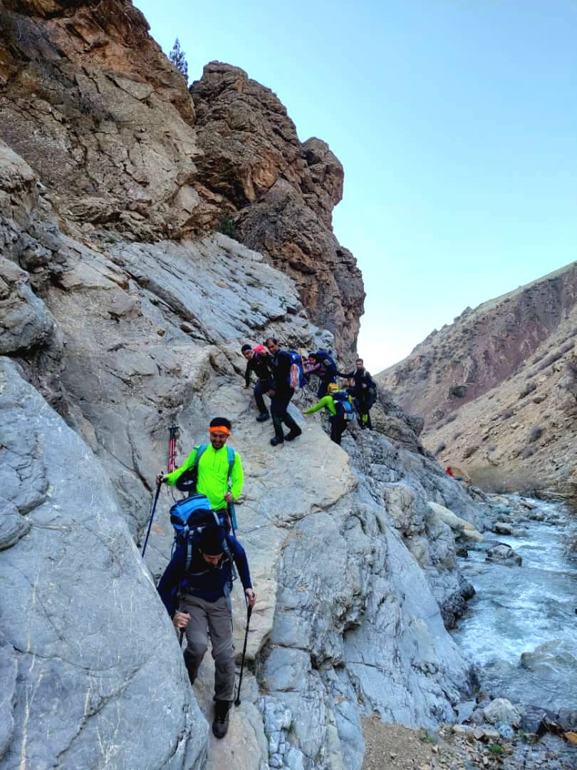 روز جمعه در انتهای ترین نقطه روستای زیبای تکیه سپهسالار ماشین ها را پارک کردیم بعد از کمی پیمایش در امتداد رودخانه وارد دره سپهسالار شدیم ، آب زیادی در رودخان جریان داشت و بدلیل صخره های سنگی برای پیمایش مجبور به چندین بار عبور از عرض رودخانه پر آب شدیم . بعد از حدودا یکساعت پیمایش به سمت راست ادامه مسیر دادیم و از رودخانه فاصله گرفتیم یادآور میشوم انتهای این دره به آبشار زیبای سپهسالار ختم میشود.