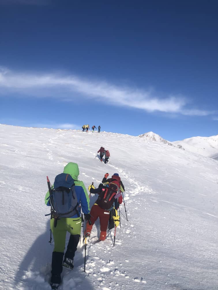 مسیر برف قابل ملاحظهای نداشت ولی برودت هوا و باد شدید چالش ایجاد کرده بود ، یال جنوبی را تا انتها صعودکرده به سمت غرب تغییر مسیر دادیم و بعد از برف کوبی دوباره به سوی یال جنوبی حرکت کردیم.