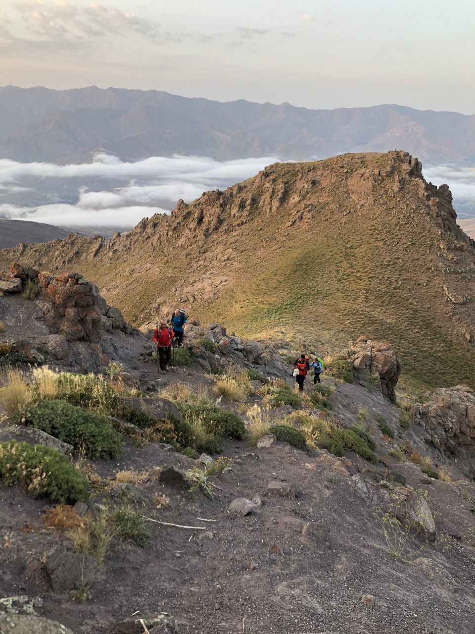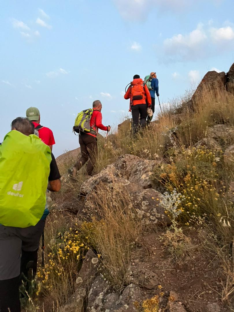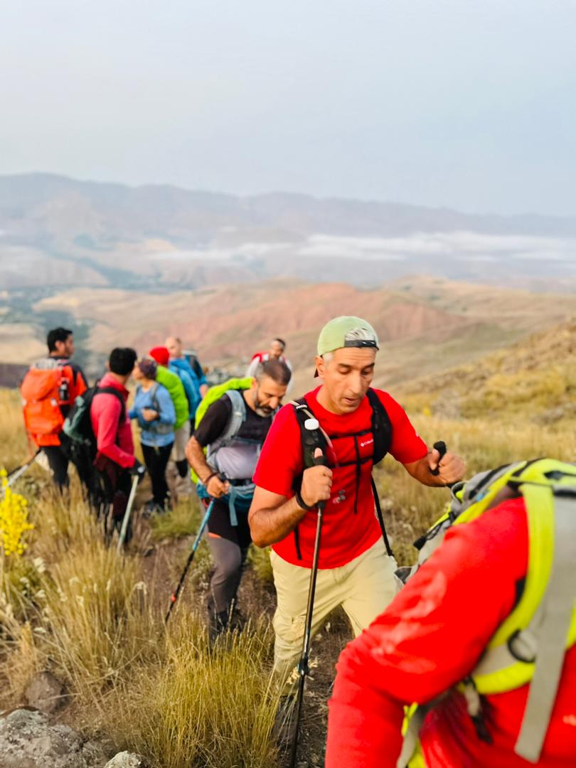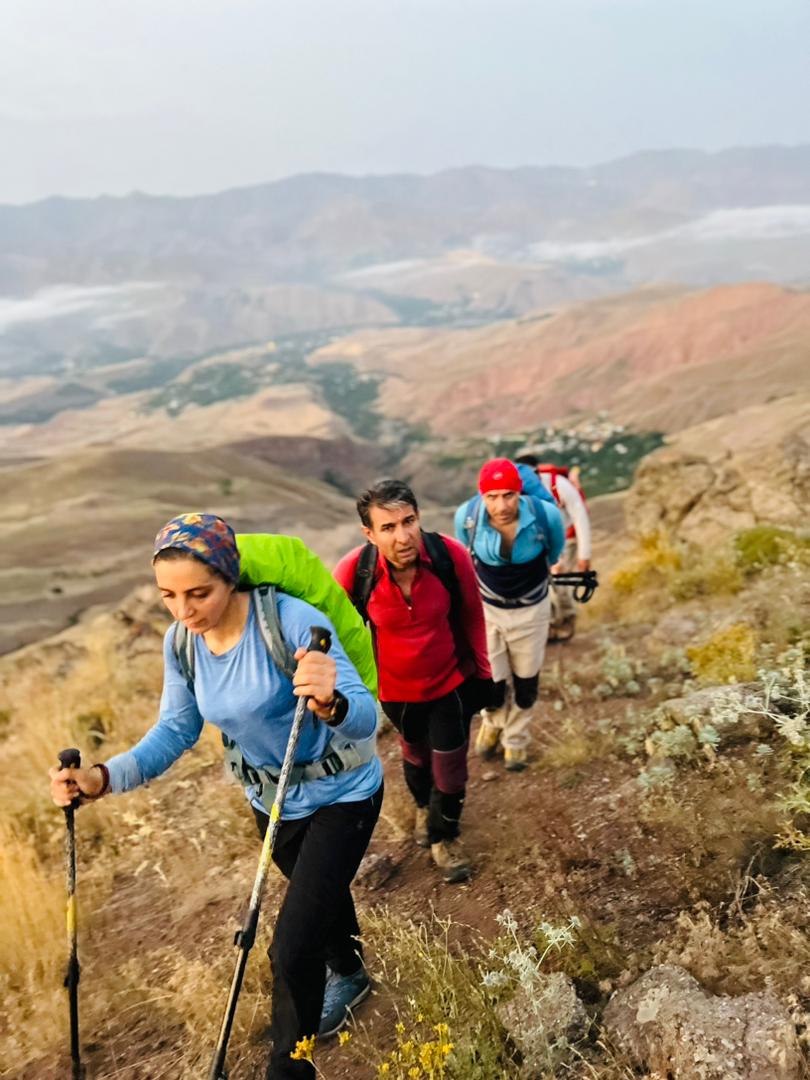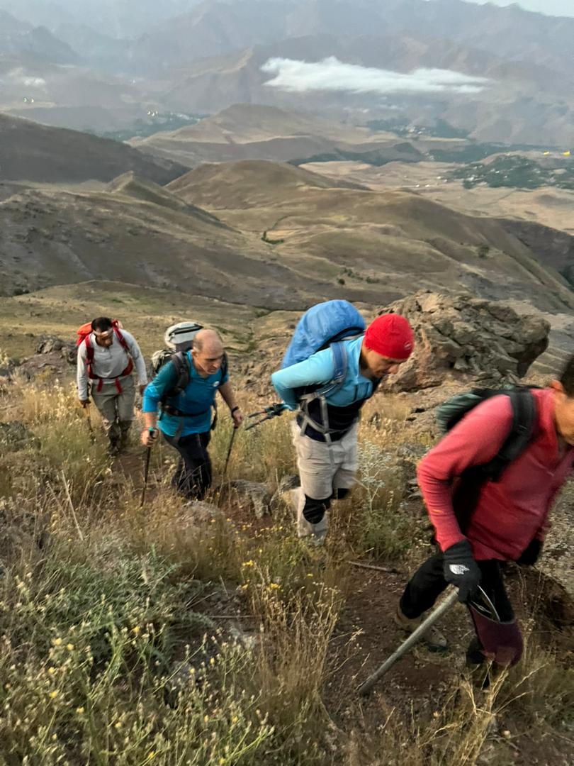 حدودا یک کیلومتر جلوتر از ما یک تیم کوچک از کوهنوردان در حال صعود بود، این تیم رو شب قبل تو روستای کرکبود دیدیم،حدودا ساعت های ۹_۸ شب بود که به روستا رسیدند و میخواستند شبانه صعود کنند، وقتی ما به محل صبحانه رسیدیم متوجه شدیم که این دوستان شب قبل را در همین گوسفندسرا شب مانی کردند که محل مناسبی برای برپایی کمپ و شب مانی هم هست. در ادامه مسیر به چشمه دائمی معروف و پر آب ترازان رسیدیم، چشمه ای که آب بسیار خنک و گوارا و نسبتا زیادی داشت، و نگرانی ما رو نسبت به کمبود آب در منطقه بسیار کم کرد، در ادامه مسیر مجبور به فرودی دویست متری شدیم تا دوباره به یال های منتهی به قله دسترسی پیدا کنیم، قله سات قله ای طولانی و طاقت فرساست به علت وجود همین فراز و نشیب های طولانی، یعنی شما چه در حال صعود چه در حال فرود باید ارتفاع کم و زیاد کنید!