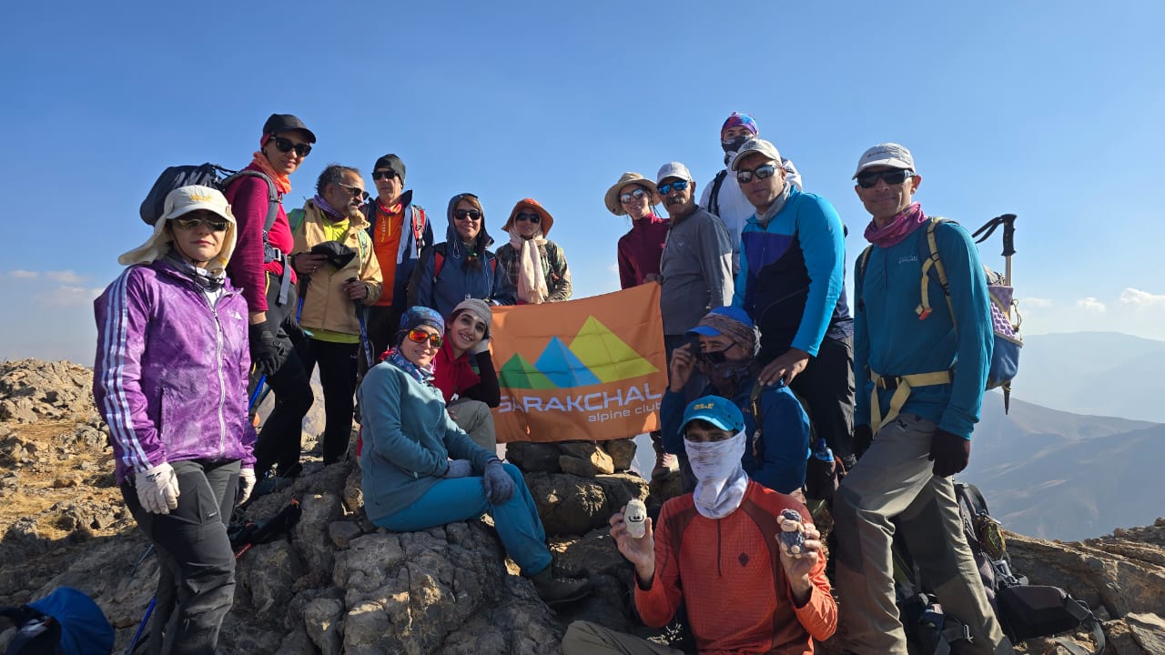 ۳ نفر از دوستان که با سرعت بیشتری به سمت قله حرکت میکردند ساعت۱۲:۰۰ به قله باریک بند رسیدند و بقیه تیم هم ساعت ۱:۱۵ موفق به