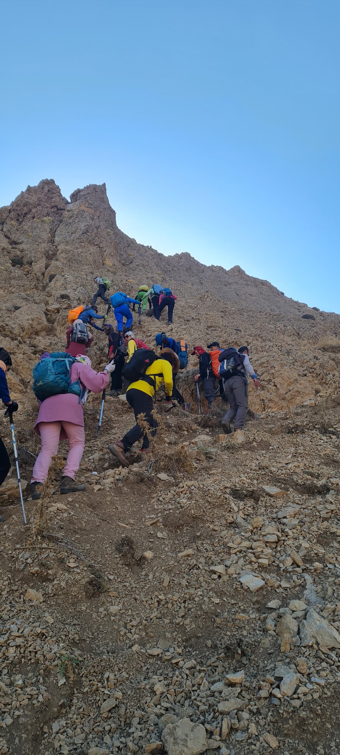 هستش هم میتوان از روی یال که صخره ایی و دست به سنگ میباشد صعود کرد و هم میتوان از پاکوب مجاور یال که کاملا در یک مسیر شیبدار ادامه می یابدادامه مسیر داد. ساعت 8 در انتهای آن شیب تند، در جایی مناسب برای صرف صبحانه توقف 20 دقیقه ای داشتیم. بعد از صرف صبحانه تیم به دو گروه تقسیم شد. تیم اول با سرعت بیشتر به سمت قله حرکت کرد و اولین نفر ساعت 11:07 دقیقه به قله رسید. تیم دوم هم ساعت 11:50 به تیم اول پیوست. قرار بر این بود که از انگمار به پروانه صعود داشته باشیم. اما با توجه به کوتاه بودن روز در این فصل و زمان رسیدن تیم دوم، از این تصمیم منصرف شدیم. بنابراین تا ساعت 12:25 دقیقه روی قله نشستیم و از زیبایی کوهستان لذت بردیم و بعد از گرفتن عکس یادگاری با قله و تجدید قوا، فرود را از همان مسیر صعود آغاز کردیم. که در نهایت آخرین نفرات تیم ساعت 16:30 به محل پارک ماشین ها رسیدند و به اتفاق عازم تهران شدیم.