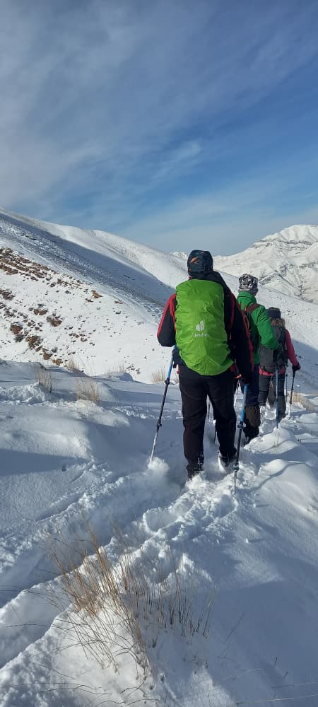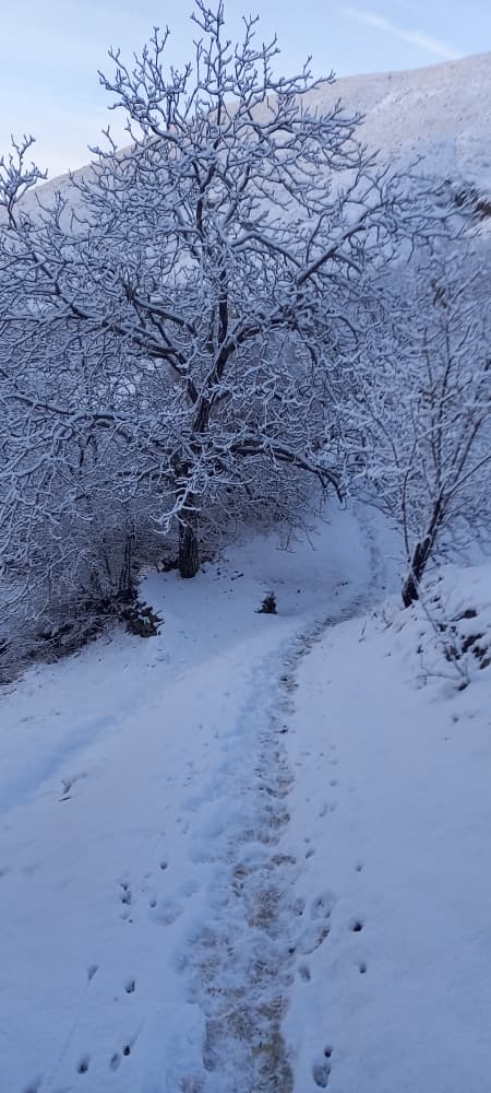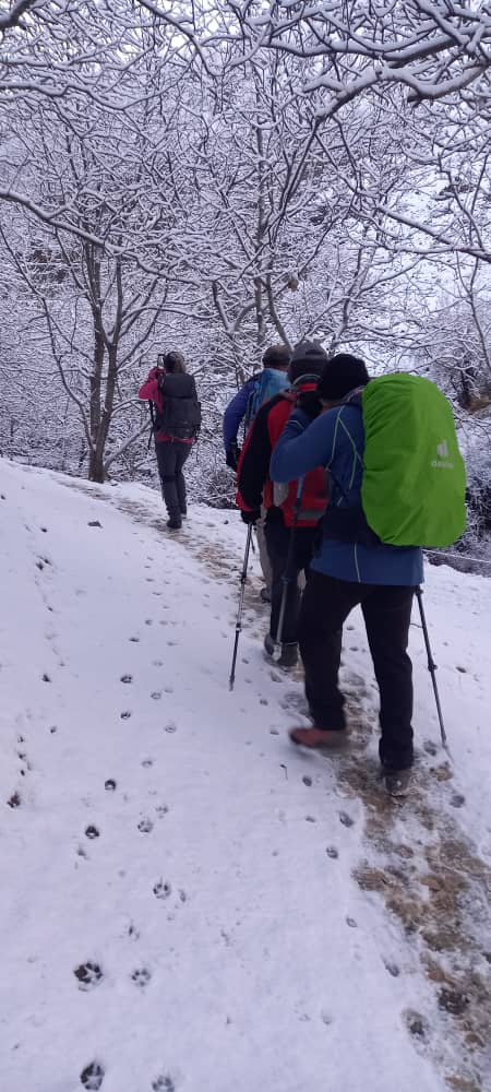 جلوتر که رفتیم منطقه از برف شب قبل سفید پوش شده بود و زیبایی برف روی درختان طول دره ، مناظر زیبایی را فراهم کرده بود و همنوردان زمانی را برای گرفتن عکس در نظر گرفتند .
