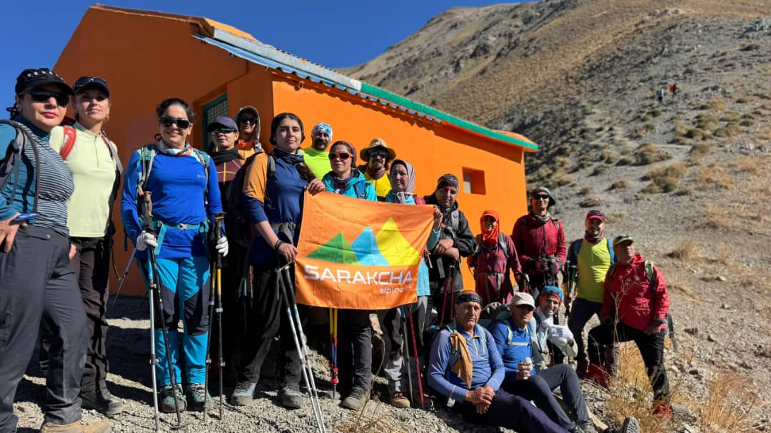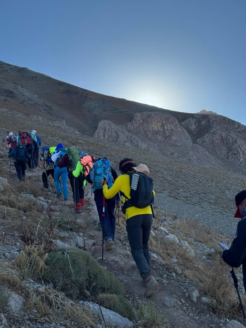 پاکوبی پیچ در پیچ را بالا می رویم ، دیواره معروف و باشکوه شمشک در شمال و بعد از آن ، خط الراس کلون بستک به سرکچال ها دیده می شود ، اکنون پناهگاه لجنی با رنگی زیبا و تازه در دور دست و روبروی ماست و بعد از مدتی نور خورشید از پشت آن بالا می آید .