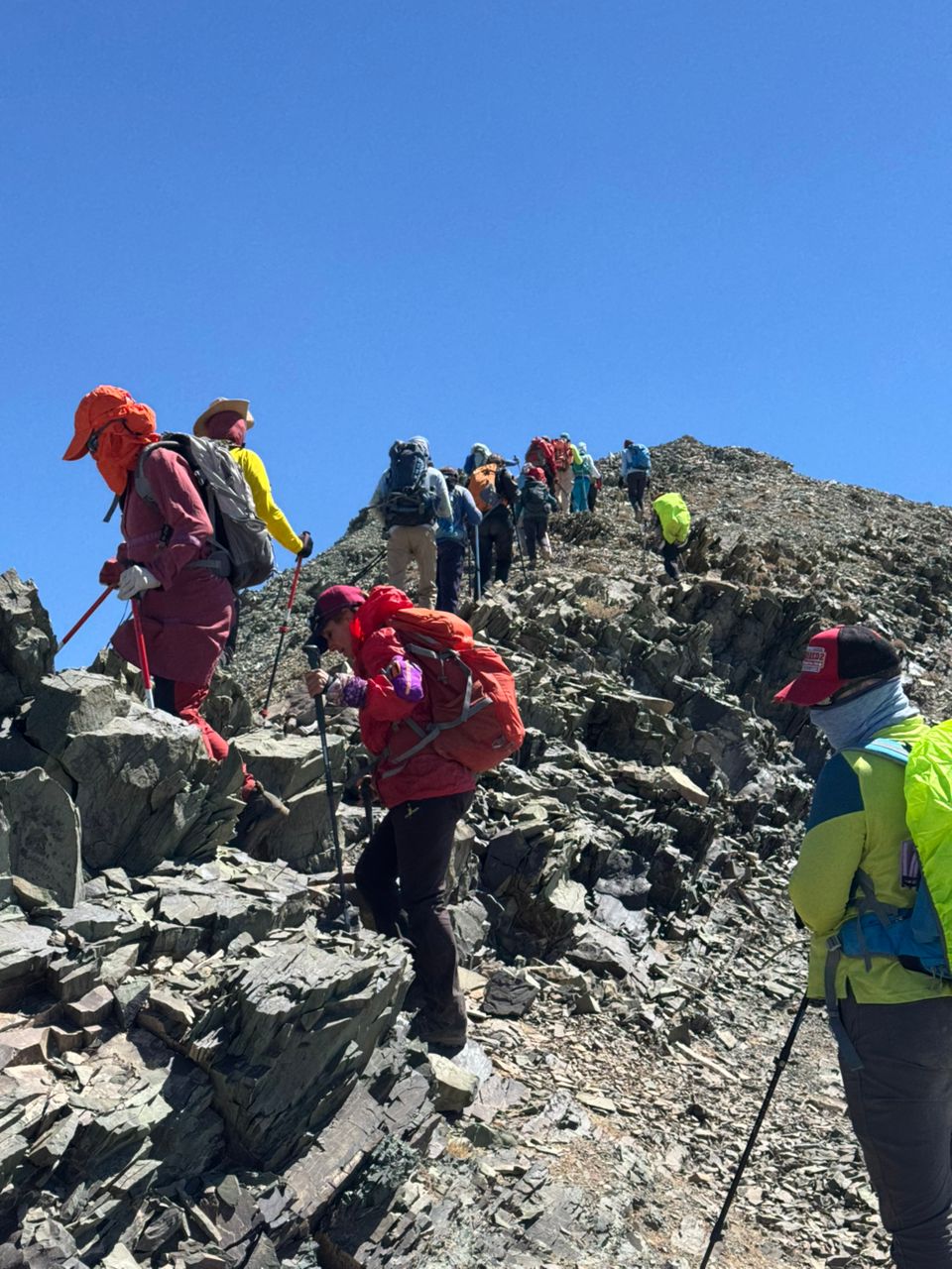 ساعت هشت و سی دقیقه یال جنوبی را بالا می رویم و همه اعضا هماهنگ با یکدیگر و در صفی مرتب به راحتی ارتفاع گرفته و ساعت ده و سی دقیقه روی قله سرکچال یک ( ۴۱۲۰ متر ) ، به همدیگر خدا قوت گفته به یادگار عکس گرفته می شود .