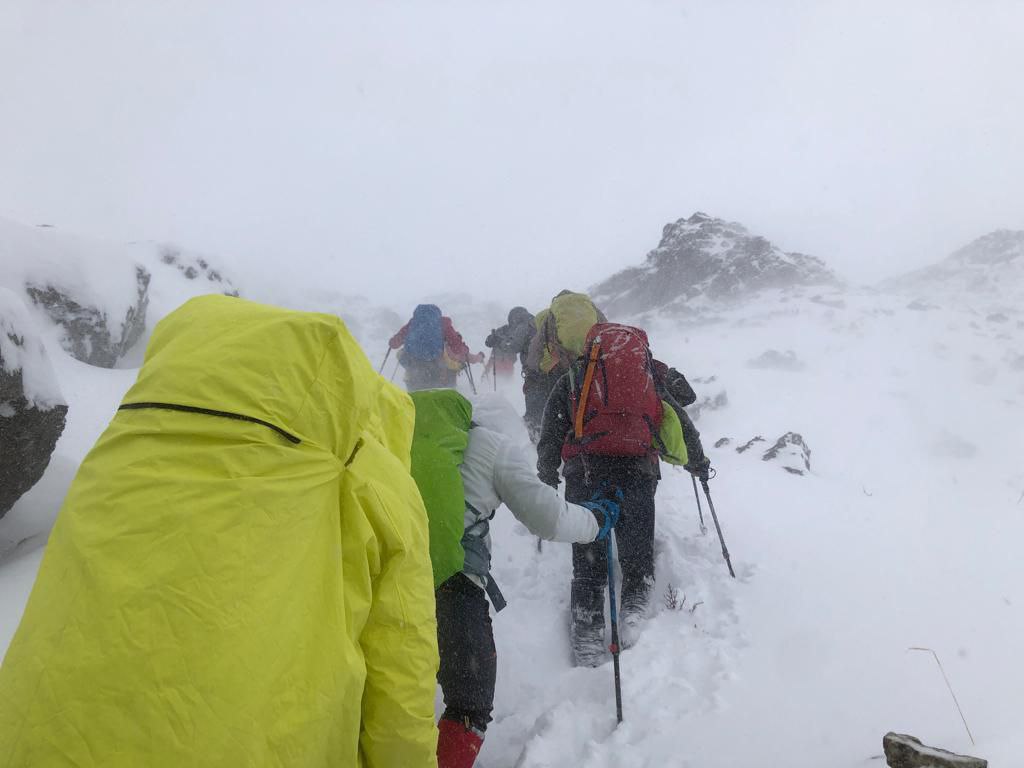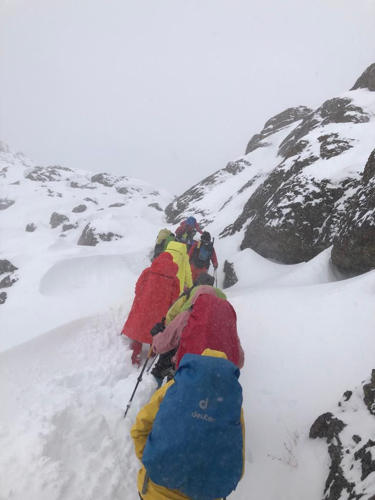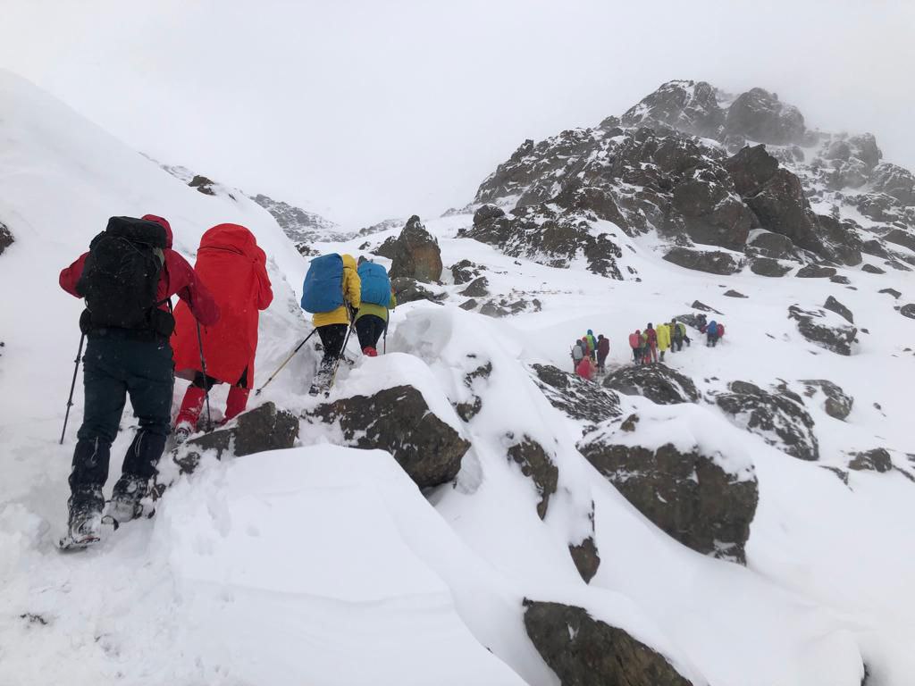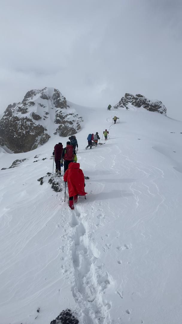 با توجه به وضعیت جوی و هشدار های هواشناسی در خصوص اجرای برنامه کوهنوردی با شگاه سرکچال تصمیماتی مبنی بر این اینکه احتمال بارش روز پنجشنبه و نیز اختلال در تردد جاده ای وجود داشته باشد ،قرار بر این شد برنامه در محدوده شهر تهران برگزار گردد. برنامه صعود به کلکچال و توچال از مسیر گرده ای شرقی پارک جمشیدیه توسط اعضای هیات مدیره باشگاه پیشنهاد و مصوب گردید . برنامه ریزی این صعود با حساسیت شرایط جوی ناپایدار و هشدار های هواشناسی اعلام شده در چند روز اخیر انجام شد . پس از ثبت نام اعضا و مشخص شدن اعضای گروه جهت این برنامه توصیه های لازم در خصوص همراه داشتن تجهیزات کامل زمستانی و نیز آمادگی جسمانی اعضاء اعلام شد . قرار بر این شد که این صعود آموزشی باشد و همزان با صعود نحوه گام برداری در برف ، بهمن شناسی ، معرفی تجهیزات زمستانی و عبور از تیغه ها در شرایط زمستانی و نیز صعود و فرود با طناب و توسط مربیان باشگاه سرکچال آموزش داده شود و باز آموزشی باشد برای اعضای شرکت کننده این برنامه در راستای ارتقای دانش و مهارت های کوهپیمایی و کوهنوردی با توجه به حوادث و اتفاقات در ورزش کوهنوردی . محل قرار انتهای پارک جمشیدیه و ساعت 5:30 بود . شب قبل از برنامه وضعیت بارش و برف بررسی و اعضا نظراتی ارائه دادند . هوا ناپایدار و برفی بود ساعت قرار در محل حاضر شدیم و برف همچنان در حال باریدن بود همه خوشحال بودن از این بارش پس از گذشت تقریبا 3 ماه کم بارش .با توجه به لغزنده بودن معابر تعدادی از همنوردان دیر رسیدند .ساعت 6:10 پیمایش صبح روز جمعه 22/10/1402 با حضور 30 نفر از اعضای باشگاه سرکچال در هوایی برفی و دل انگیز آغاز شد، انتهای پارک جمشیدیه به سمت یال گرده ای شرقی کلچال مسیر را ادامه دادیم مسیر پوشیده از برف بود ابتدای مسیر حدوداً 15 سانت برف بر زمین نشسته بود پس از یک ربع پیمایش یک نفر از از اعضا تصمیم به برگشت گرفت که با هماهنگی و موافقت سرپرست برنامه برگشت . هر چه زمان می گذشت بارش شدیدتر و برف بیشتر بر زمین می نشست هوا خوب بود سرعت باد پایین بود .پس از یک ساعت از پیمایش و با روشن شدن هوا ساعت 7:20 بخشی از آموزش که نحوه گام برداری در برف بود توسط آقای محمد رضابهروزی از مربیان با اخلاق و توانمند باشگاه ارائه گردید . پس از یک ربع گروه به مسیر ادامه دادند . مسیر کاملا صخره ای بود قسمت های از مسیر را هم به منظور آموزش کار با طناب و هم به منظور ایمنی بیشتر با استفاده از طناب و مهارت های استفاده از گره و طناب پیمایش شد . پس از 2 ساعت ونیم پیمایش مسیر 2 نفر از اعضا در نزدیکی اردوگاه تصمیم گرفتند مسیر ا ادمه ندهند و برگردند . با موافقت سرپرستان برنامه و همراهی و راهنمایی مربی به سمت اردوگاه که در قسمت جنوبی مسیر بود هدایت شدند . پس از نیم ساعت ادامه مسیر در ساعت 9 صبح در محلی مناسب و کنار صخره ای بزرگ صبحانه به مدت یک ربع صرف شد . پس از صرف صبحانه ساعت 9:30 گروه توانمند و 26 نفره با اراده قوی و آمادگی کامل مسیر را با هدف صعود قله کلکچال ادامه دادند بارش گاهی موقتاً قطع می شد. هر چه بالا تر می رفتیم حجم برف و سرعت باد بالاتر و اراده گروه بیشتر می شد . گرده های مسیر پس از فراز و نشیب ها طی می شد گاهی بدلیل حجم زیاد برف تا 80 سانت و بیشتر از صخره می بایست عبور کرد. و نیاز به حمایت و استفاده از طناب بود و باز هم فرصتی بود برای دانش افزایی و مهارت آموزی در شرایط سخت که امروزه برای هر کوهنوردی لازم و ضروری می باشد . ساعت 12:30 پس از استراحت کوتاه مسیر را ادمه دادیم سرعت باد بیشتر شد و دمای هوا بسیار پایین بود اعضای تیم همچنان با قدرت مسیر را ادامه دادند. ارتفاع 3100 متر بود و با حساسیت بیشر و رعایت نکات ایمنی اعضای گروه به نوبت برف کوبی می کردند صحنه ای زیبا بود تلاش دوستان در این برنامه با همدلی و روحیه و مشارکت بالا 200 متر مانده به قله حجم برف در بعضی از قسمت ها از 100 سانت هم بیشتر بود و نقاب ایجاد شده بود در این قسمت نکات آموزشی در خصوص بهمن و نحوه عبور از مسیر های ایمن در برف ارا